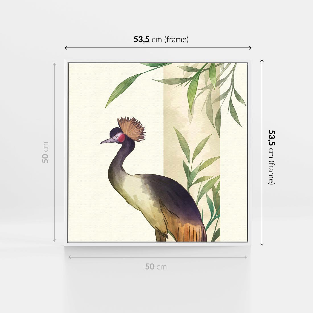 Obraz w ramie 50x50 - Kwiatowa Ekspresja - japońska sztuka, ptak - rama biała