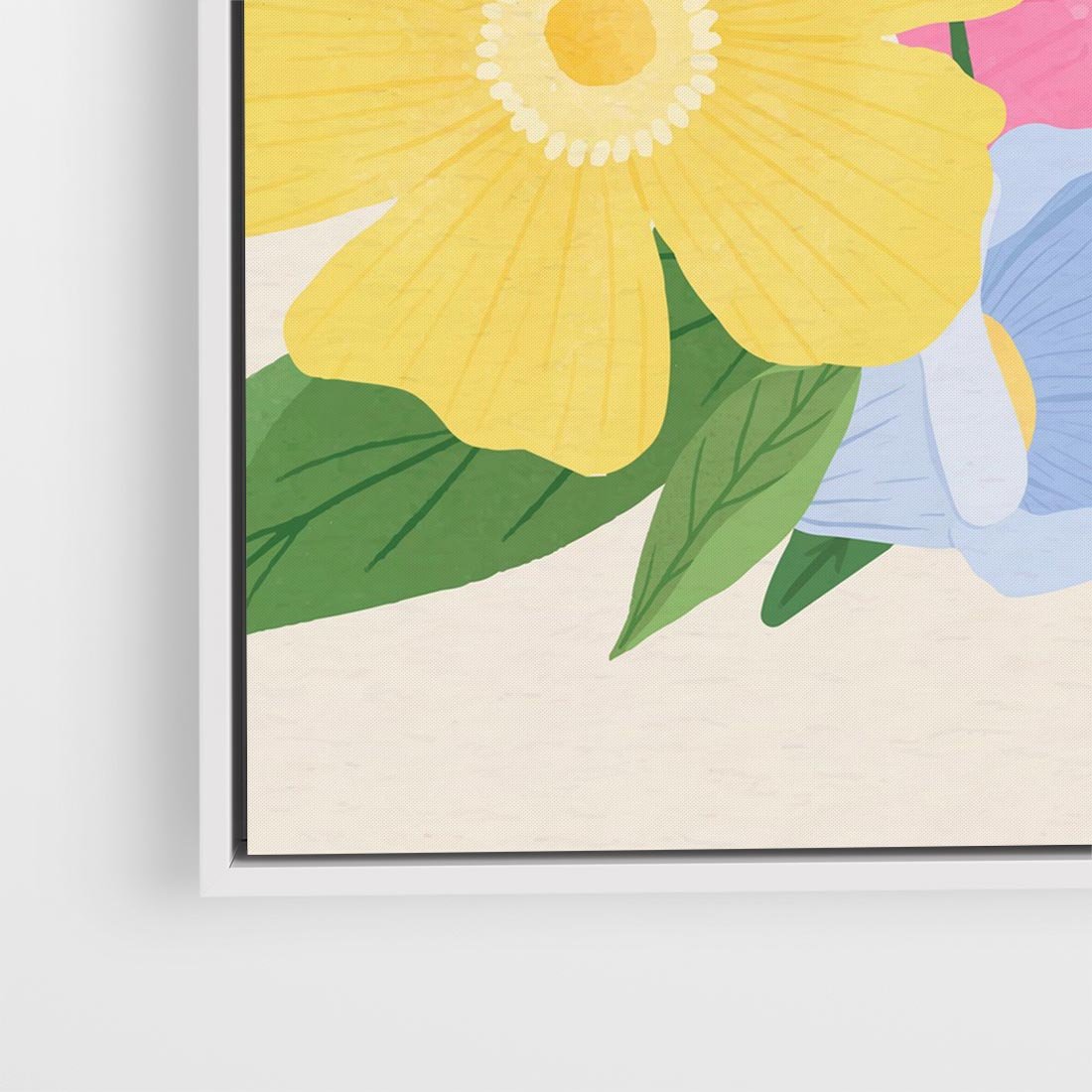 Obraz w ramie 50x50 - Kwiatowy Uśmiech - kwiaty, akwarela - rama biała