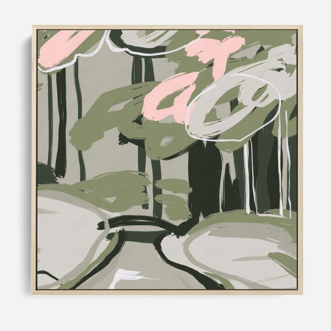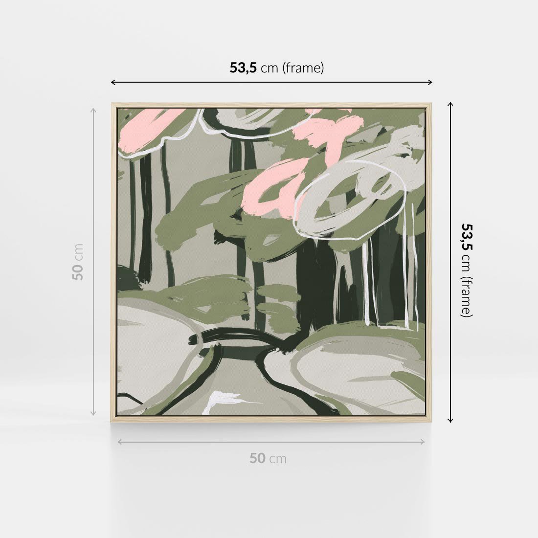 Obraz w ramie 50x50 - Leśny Zakątek - pastelowy krajobraz, nowoczesny plakat - rama drewno