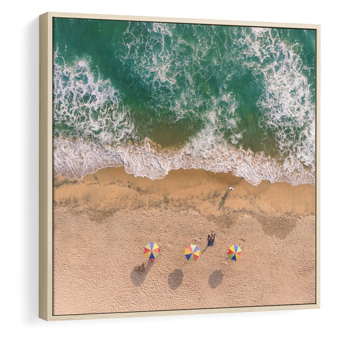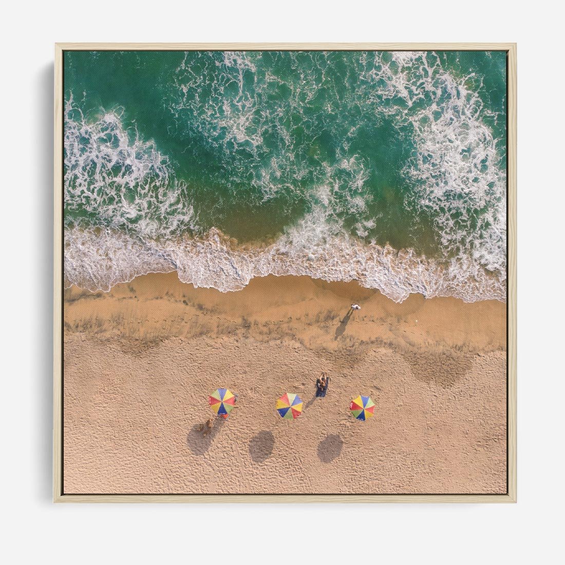 Poczuj atmosferę letnich wakacji za pomocą obrazu przedstawiającego plażę z morzem i parasolami. Przenieś się na piękne plaże i dodaj do swojego wnętrza wakacyjny nastrój.