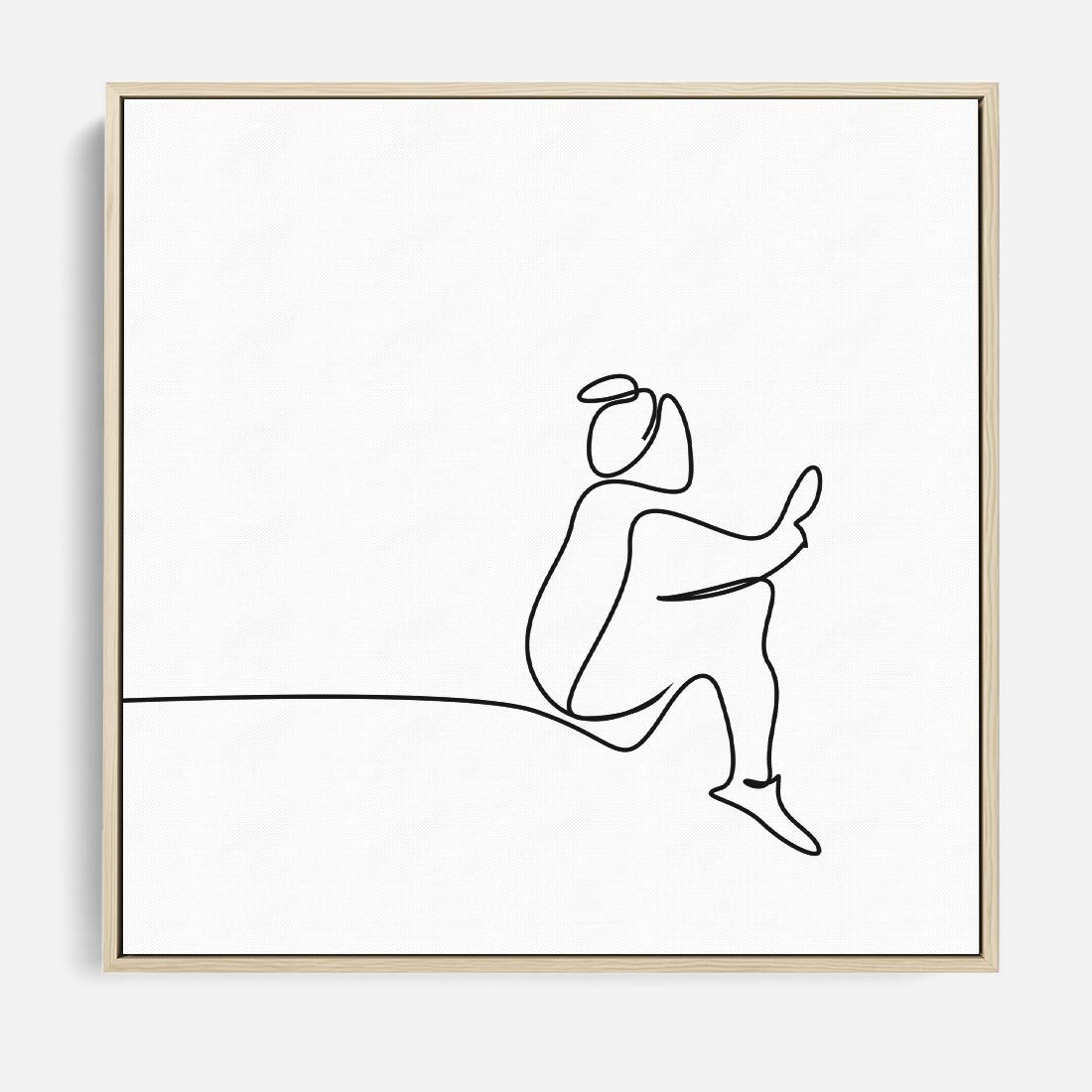 Obraz w ramie 50x50 - Linie Wewnętrznej Refleksji - line art, szkic - rama drewno