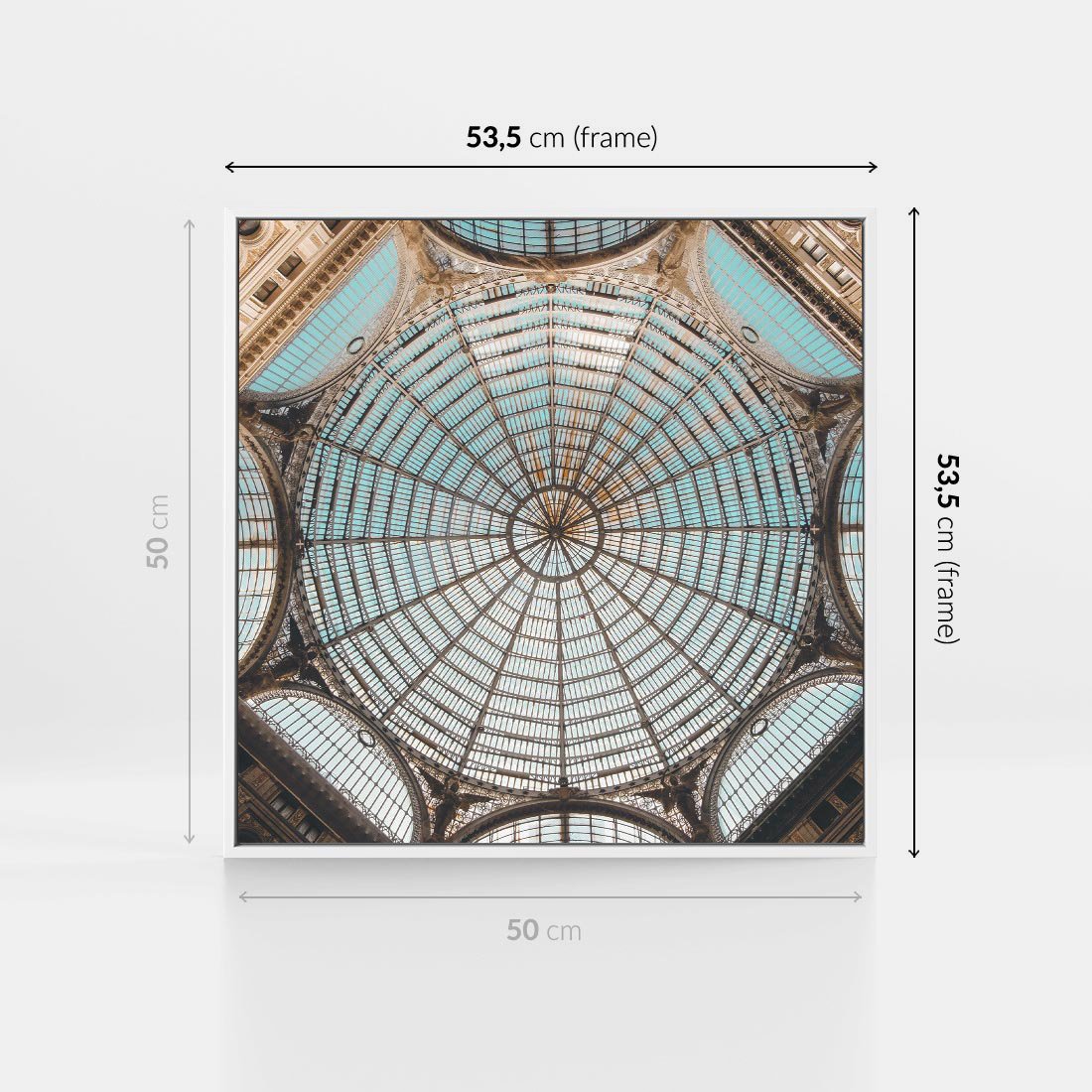 Obraz w ramie 50x50 - Magia Sklepienia - sklepienie, szklany dach - rama biała