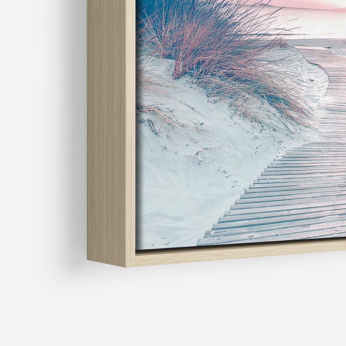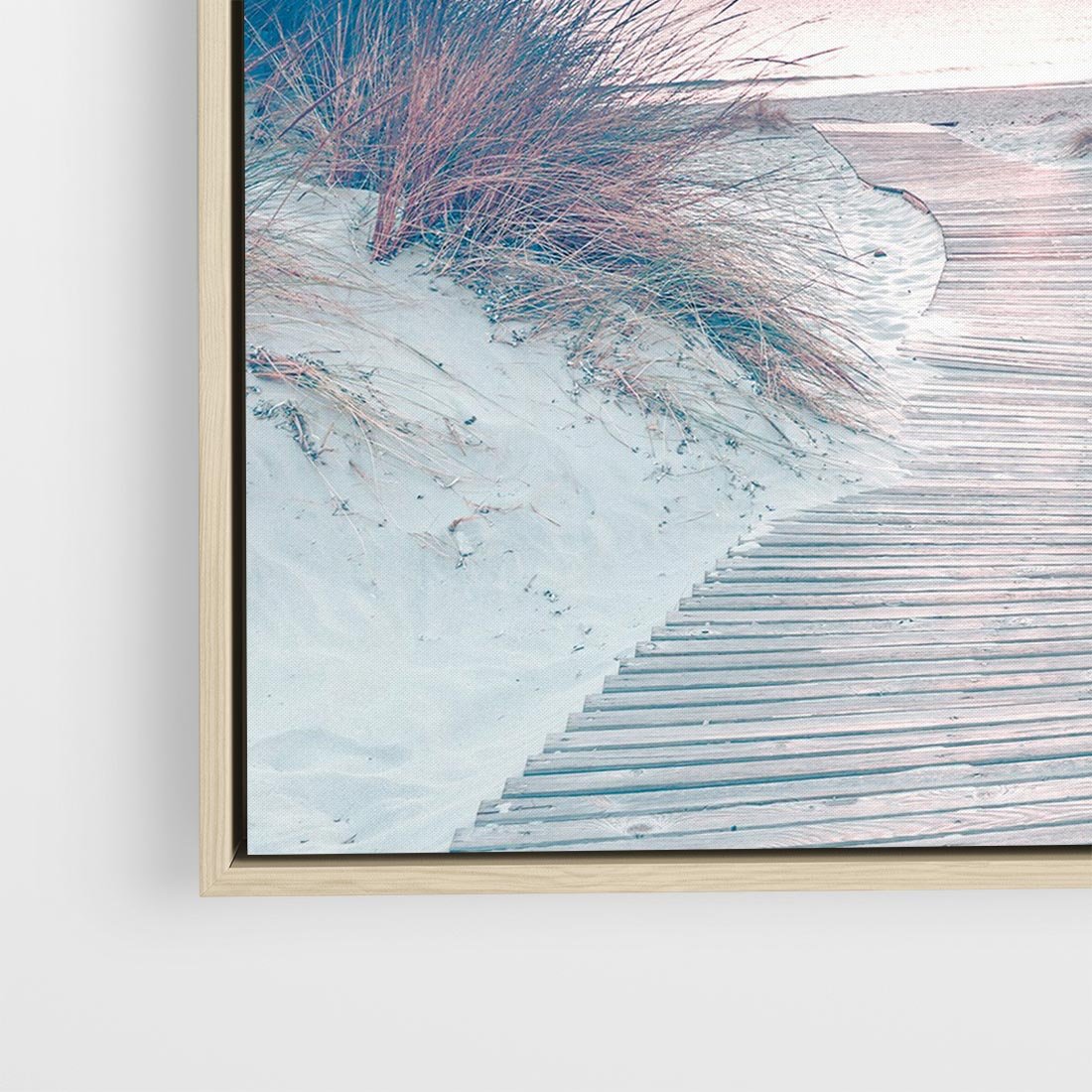 Podziwiaj piękno natury dzięki tej urokliwej fotografii. Na obrazie widzimy zachód słońca nad morzem, a stonowane kolory dodają magii chwili. Ścieżka wśród wydm prowadzi do spokojnego miejsca na plaży. To fotograficzne dzieło sztuki stworzone dla miłośników natury, romantycznych widoków i relaksu. Doskonały akcent dla tych, którzy pragną wprowadzić harmonię i spokój do swoich wnętrz.