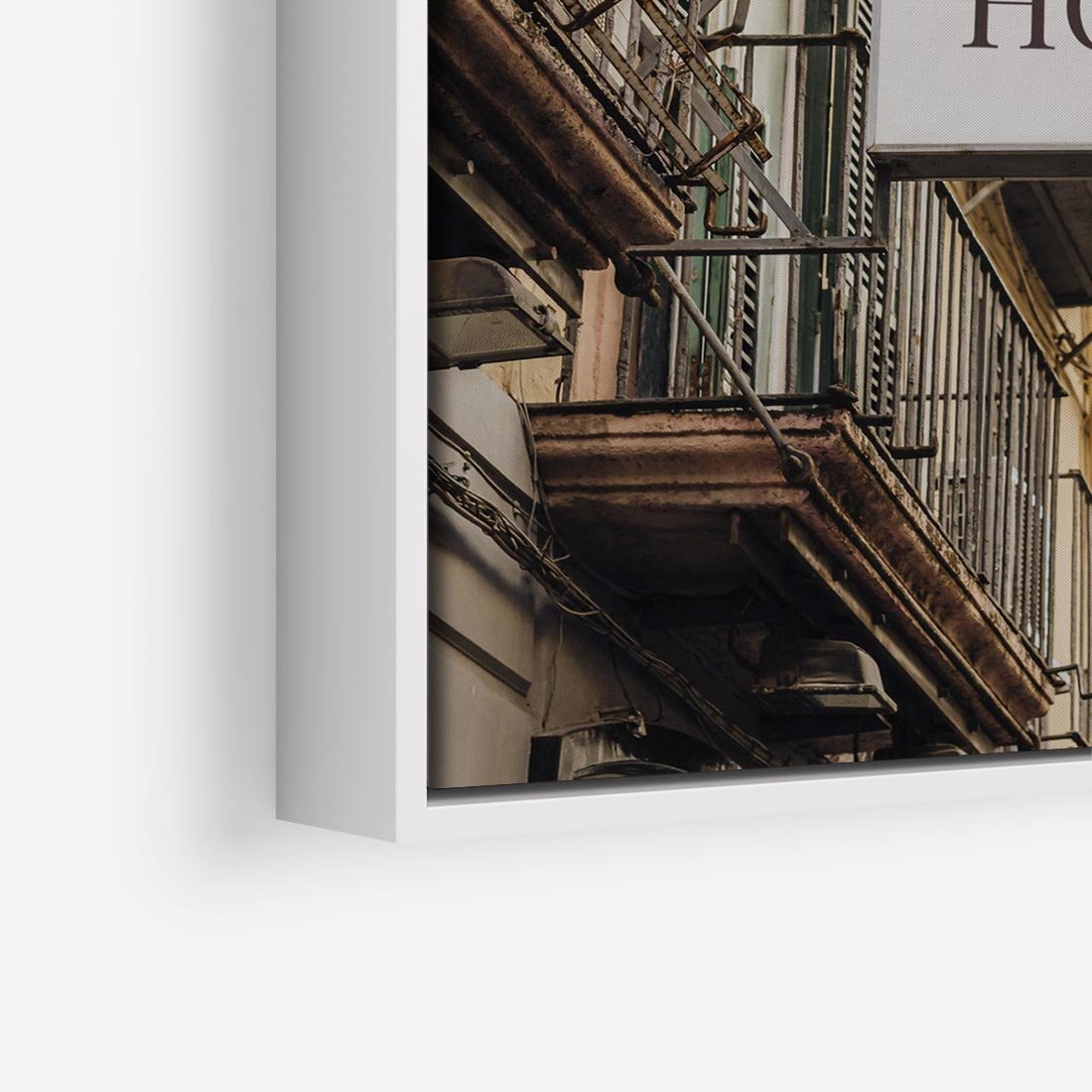 Obraz w ramie 50x50 - Magiczne Spacery - hotel, uliczka - rama biała