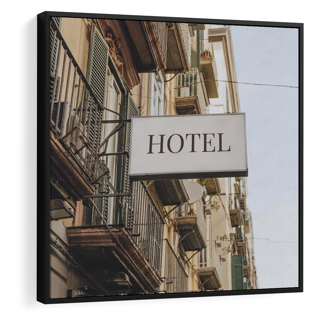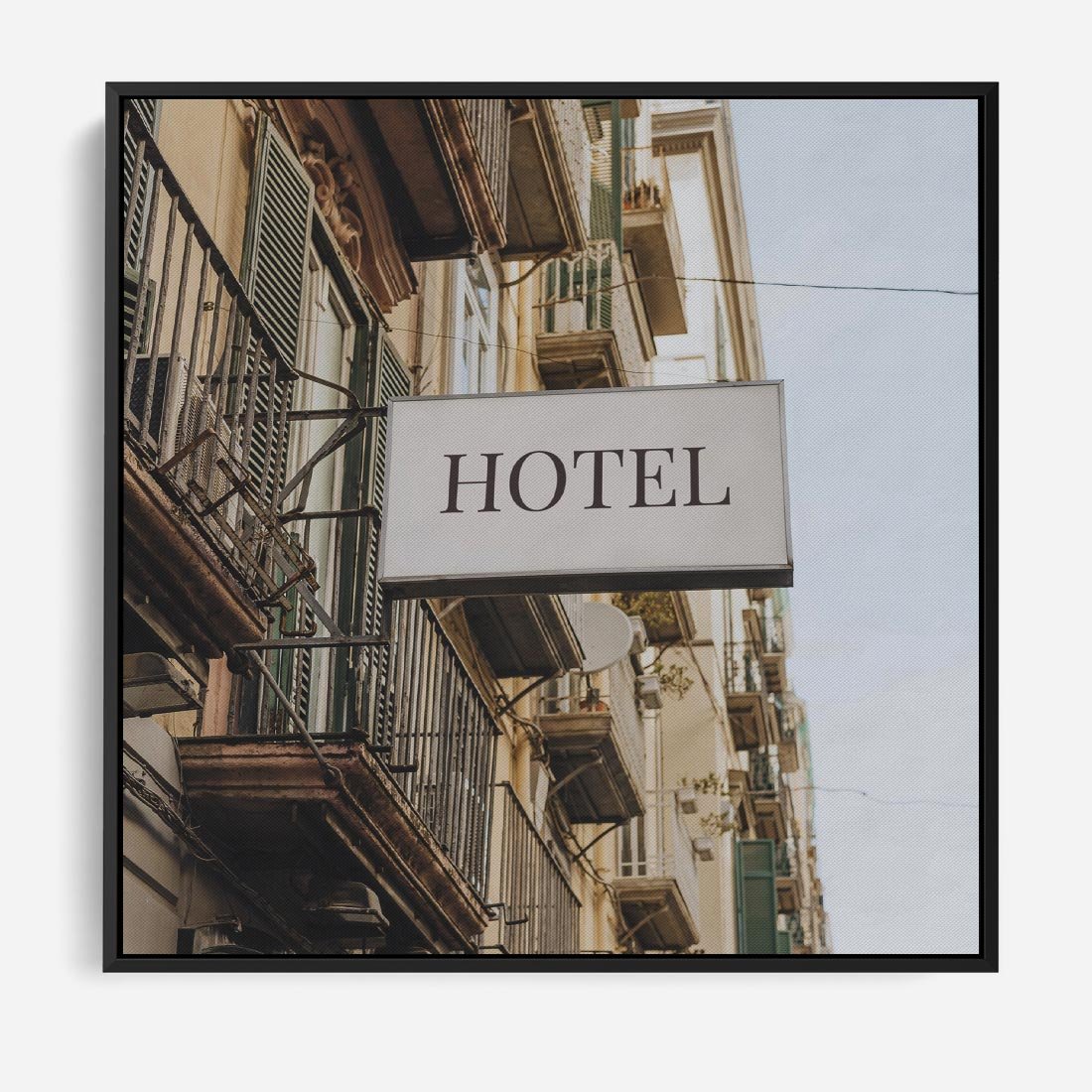 Obraz w ramie 50x50 - Magiczne Spacery - hotel, uliczka - rama czarna