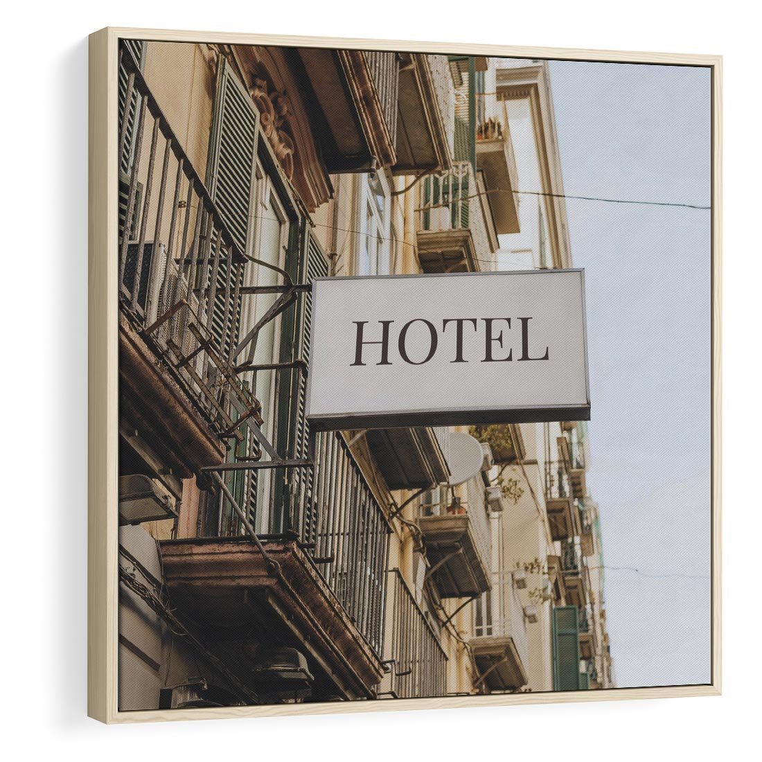 Obraz w ramie 50x50 - Magiczne Spacery - hotel, uliczka - rama drewno