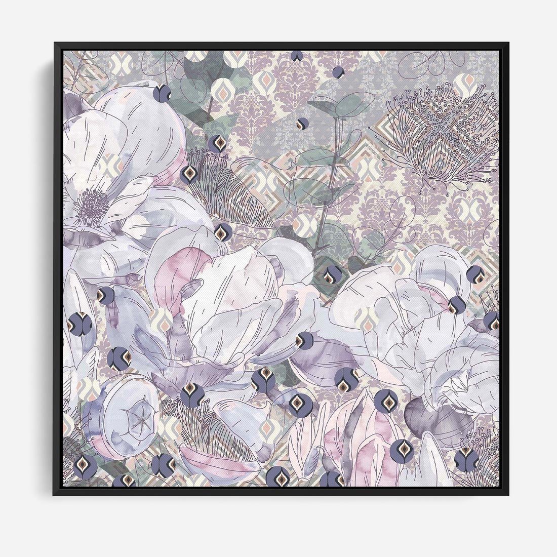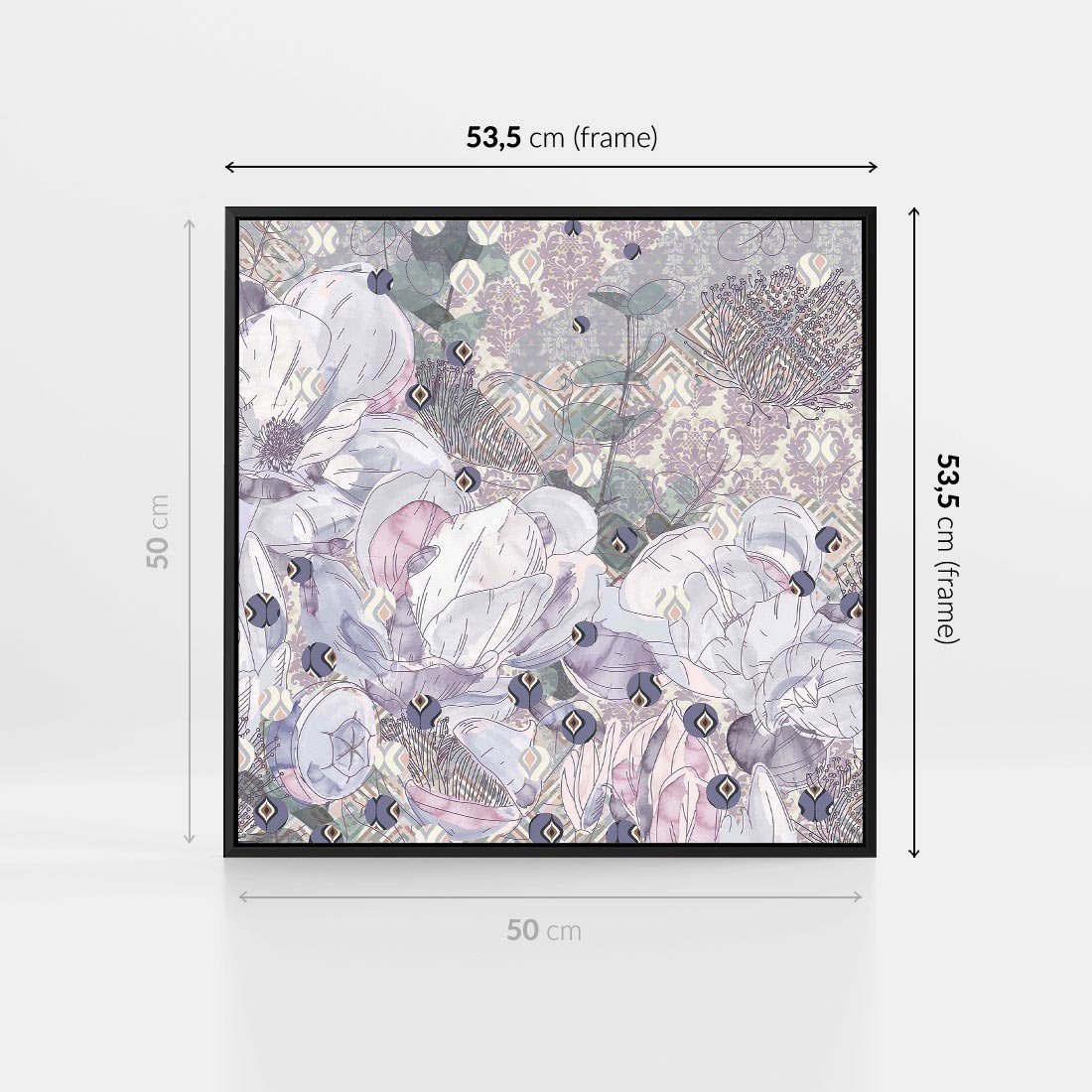 Obraz w ramie 50x50 - Malowane oddechy istnienia - pomieszane tekstury, kwiatowe elementy - rama czarna
