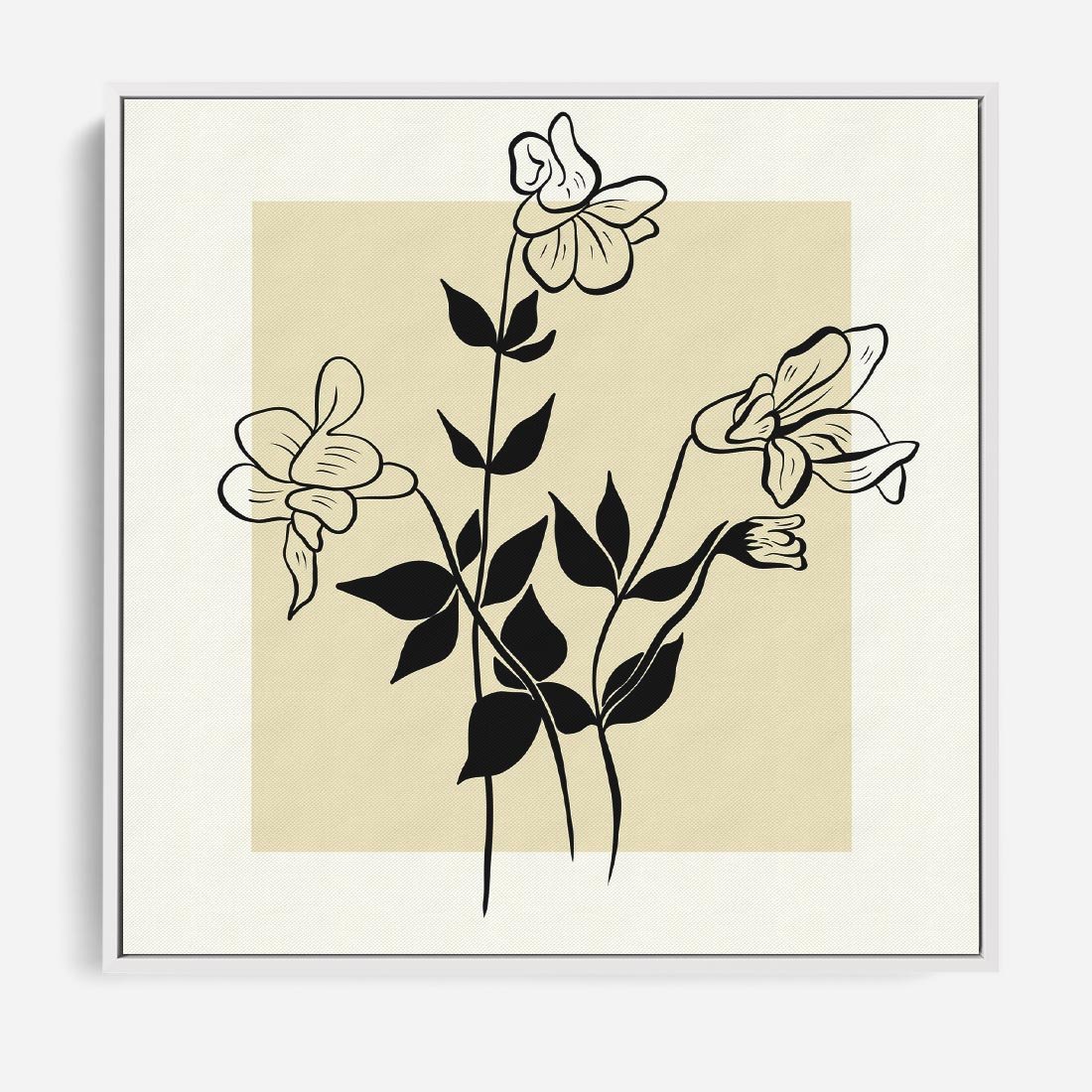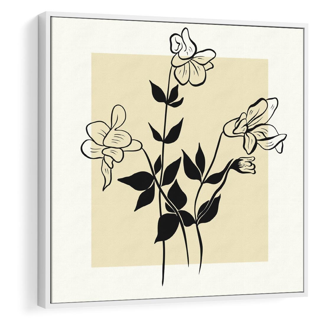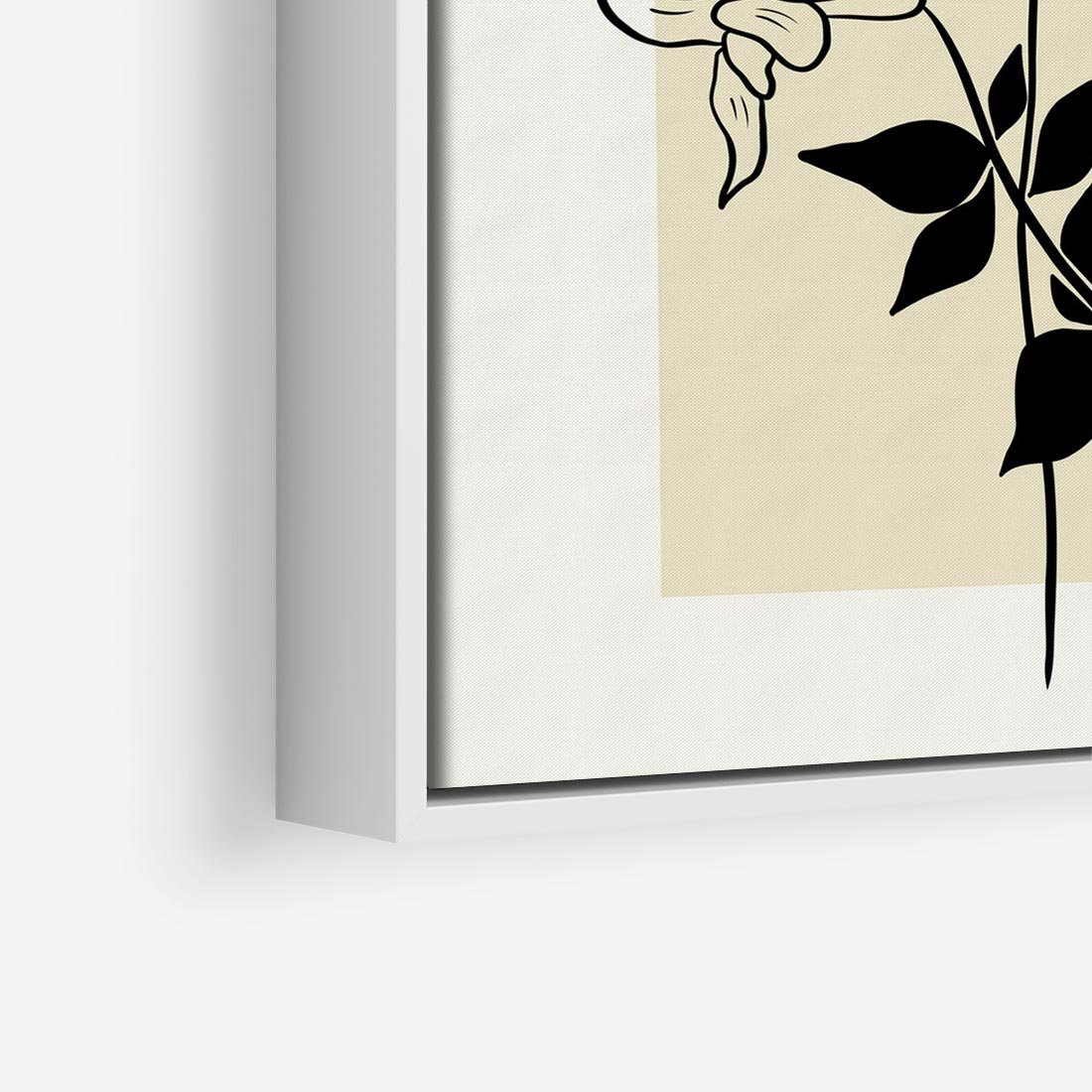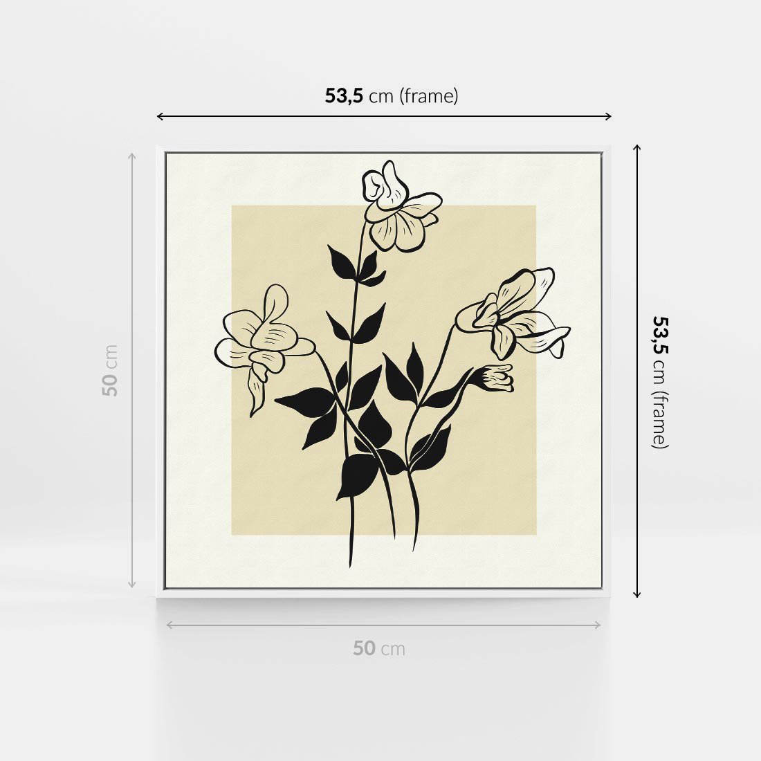 Piękne kwiaty w połączeniu z elegancką typografią tworzą minimalistyczną sztukę. Delikatny beżowy akcent dodaje subtelności całej kompozycji. To obraz, który wprowadzi do Twojego wnętrza przyjemny akcent roślinności, zachowując jednocześnie estetykę minimalizmu.
