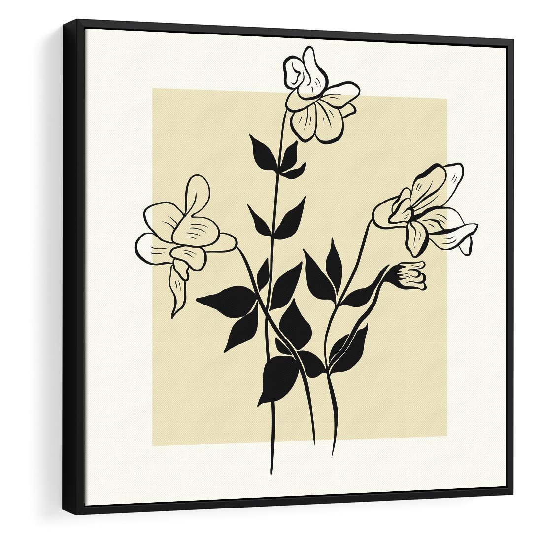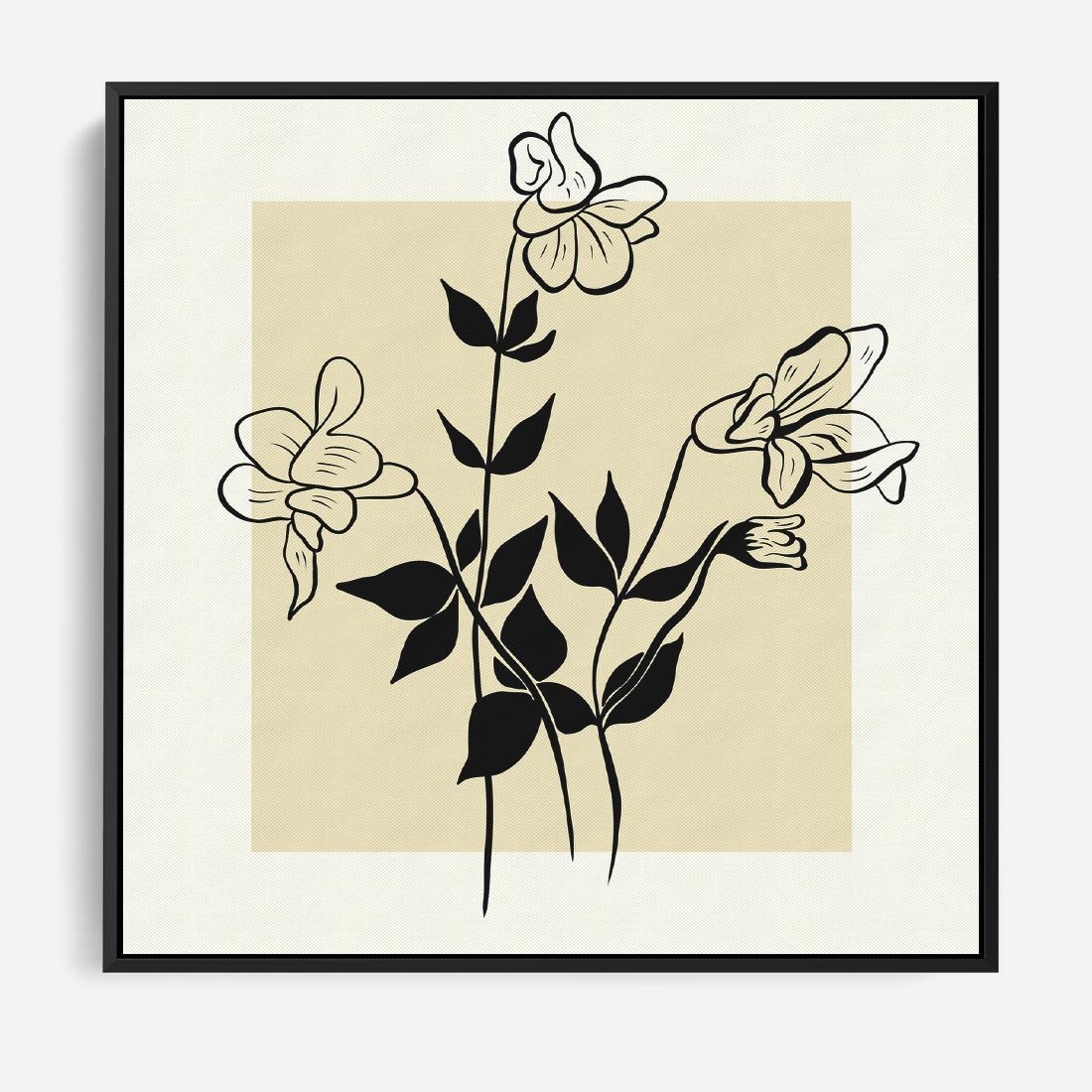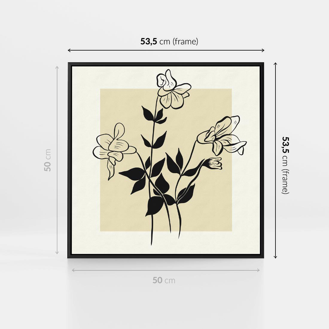 Piękne kwiaty w połączeniu z elegancką typografią tworzą minimalistyczną sztukę. Delikatny beżowy akcent dodaje subtelności całej kompozycji. To obraz, który wprowadzi do Twojego wnętrza przyjemny akcent roślinności, zachowując jednocześnie estetykę minimalizmu.