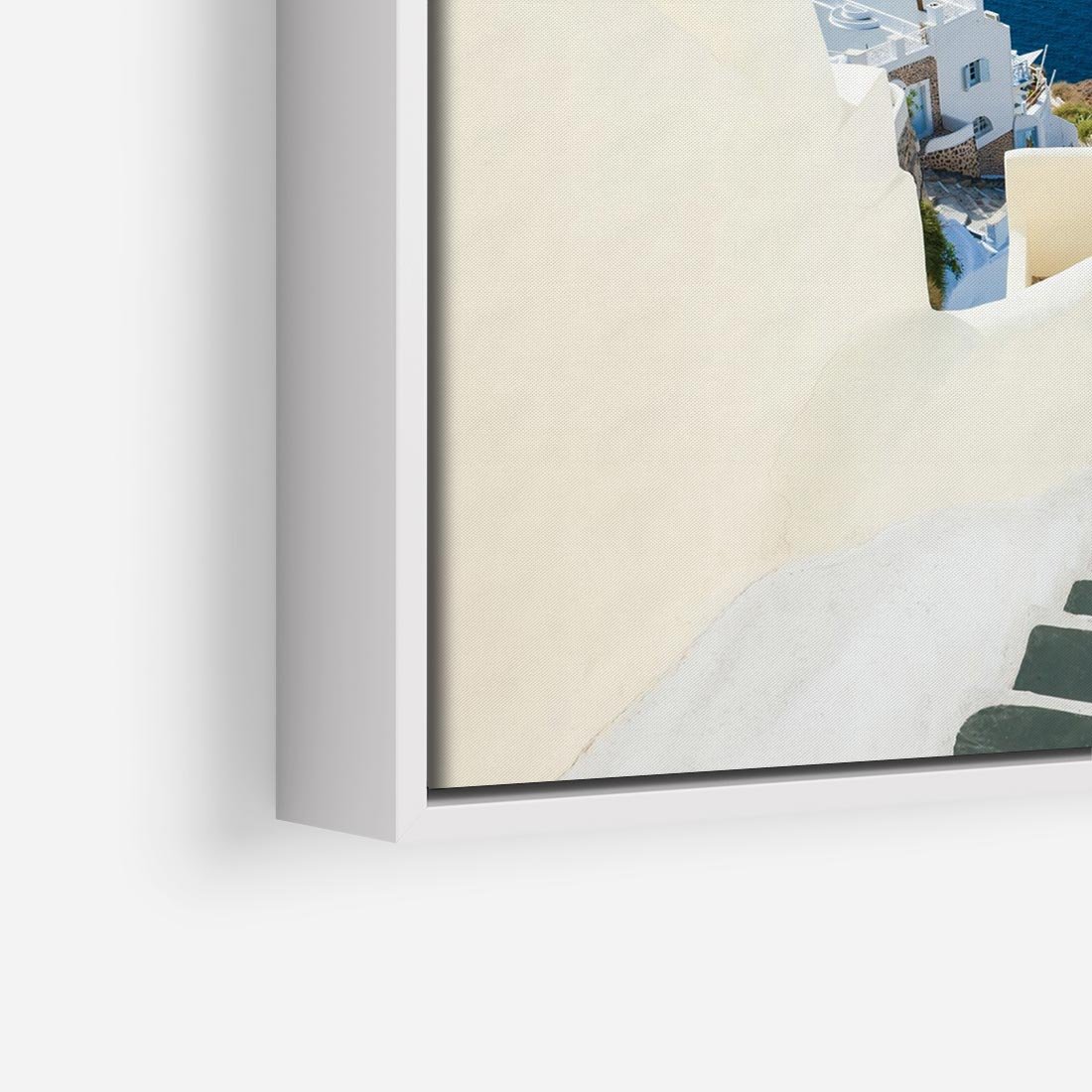 Obraz w ramie 50x50 - Malowniczy urok wyspy - Santorini, schodki - rama biała