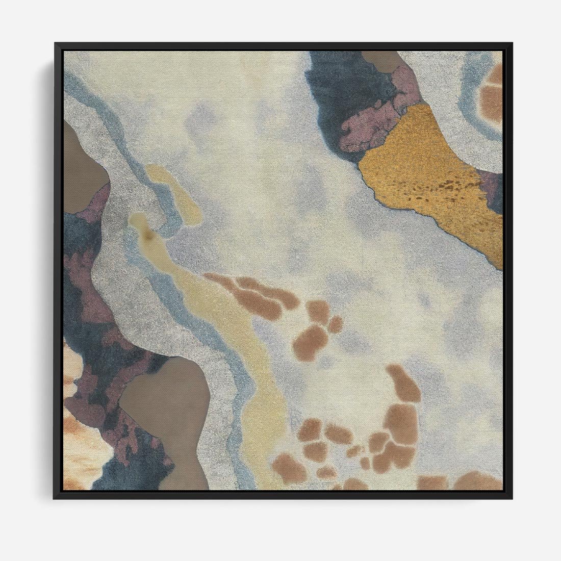 Obraz w ramie 50x50 - Melancholijne oddechy pędzla - abstrakcyjne formy, zgaszone kolory - rama czarna