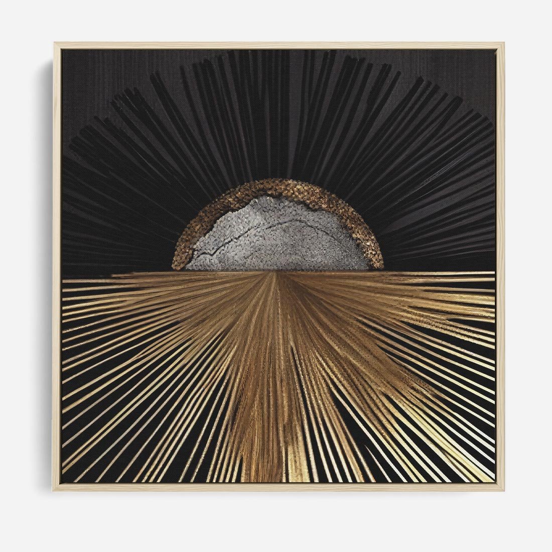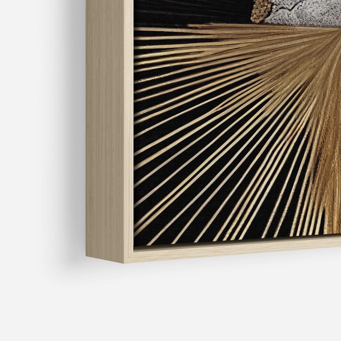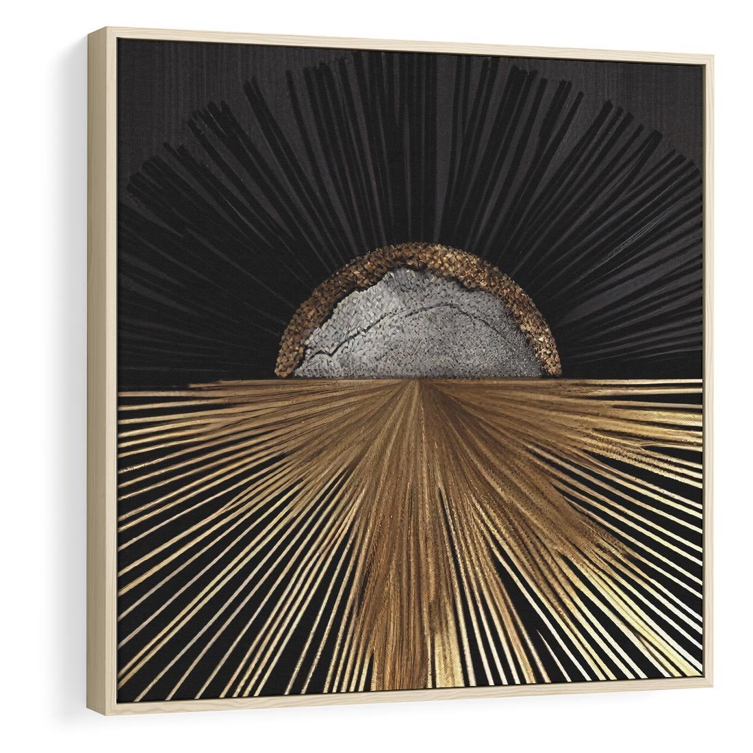 Ten obraz łączy boho estetykę z metalurgicznymi akcentami, które tworzą wyrafinowaną wariację złotych promieni słońca. Inspirująca i abstrakcyjna sztuka, która ożywi każde wnętrze.