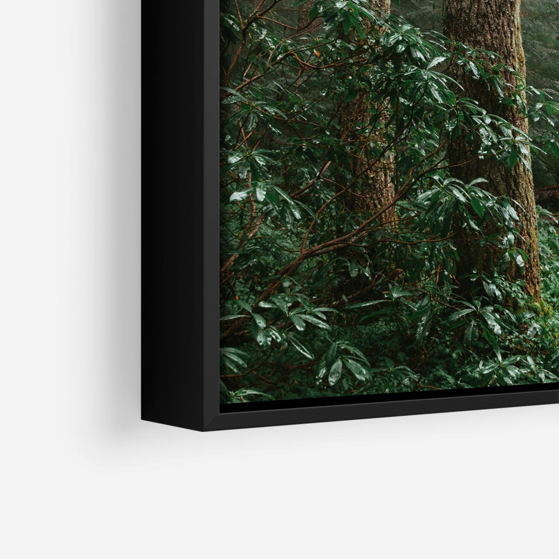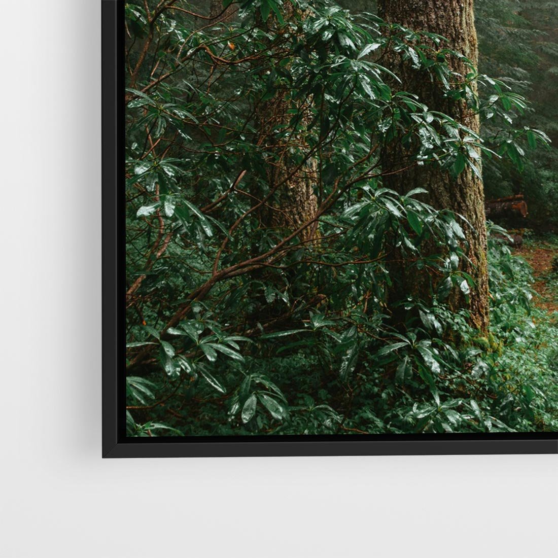 Obraz w ramie 50x50 - Mgliste Marzenia - artystyczna fotografia, las - rama czarna