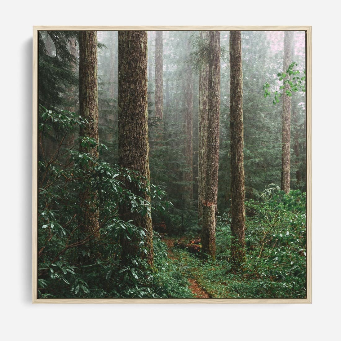 Obraz w ramie 50x50 - Mgliste Marzenia - artystyczna fotografia, las - rama drewno