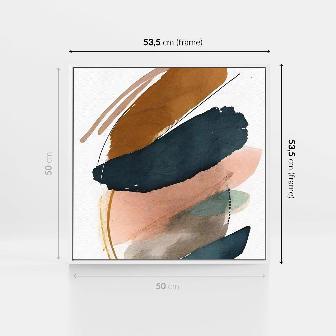 Obraz w ramie 50x50 - Migocące Impresje Przestrzeni - abstrakcyjny obraz, kolory ciepłe - rama biała