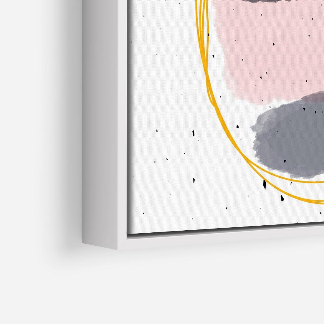 Twórcza abstrakcja, przypominająca ręcznie malowane dzieło, ożywiona plamami akwarelowymi, nieregularnymi kreskami i swobodnymi ciapkami.
