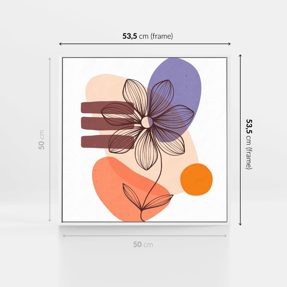Nasza abstrakcyjna sztuka łączy plamy i kwiat w wyjątkowej grafice. To twórcze połączenie tworzy dynamiczną kompozycję pełną wyrazu i nowatorskiej formy.