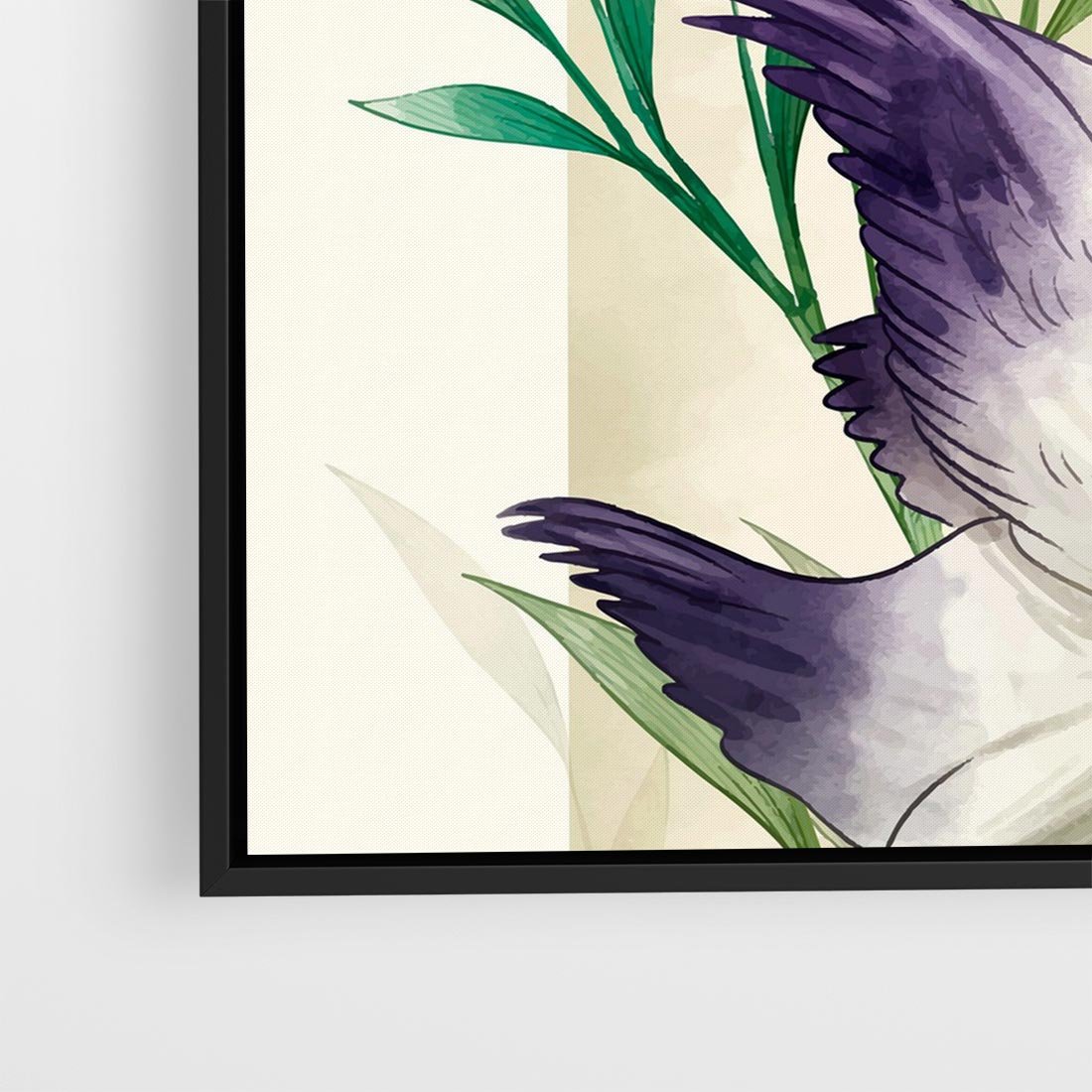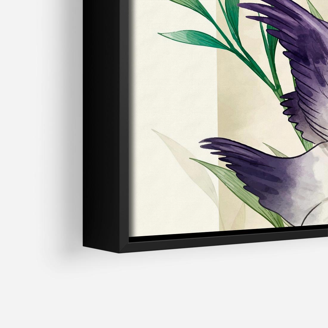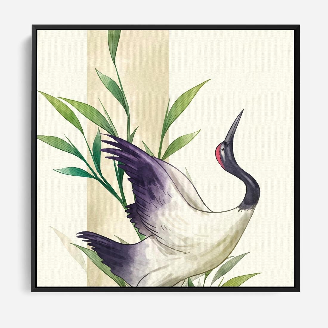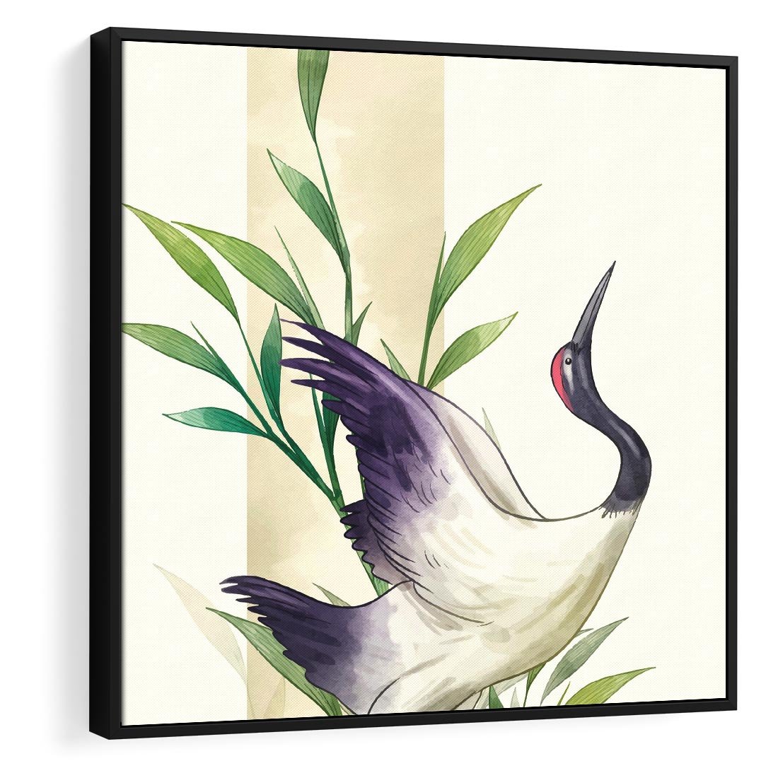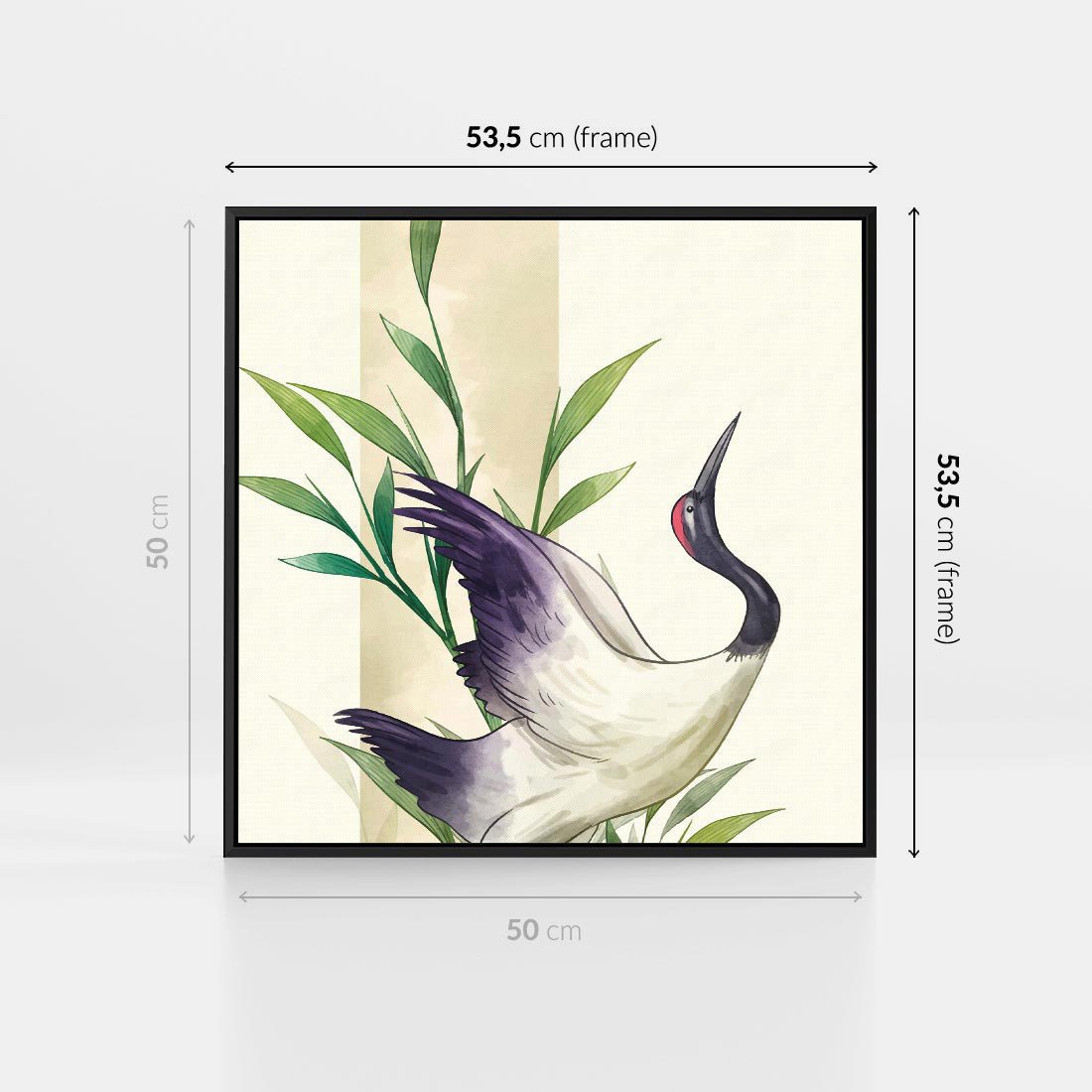 Obraz w ramie 50x50 - Migocące Ptaki - japońska sztuka, ptak - rama czarna