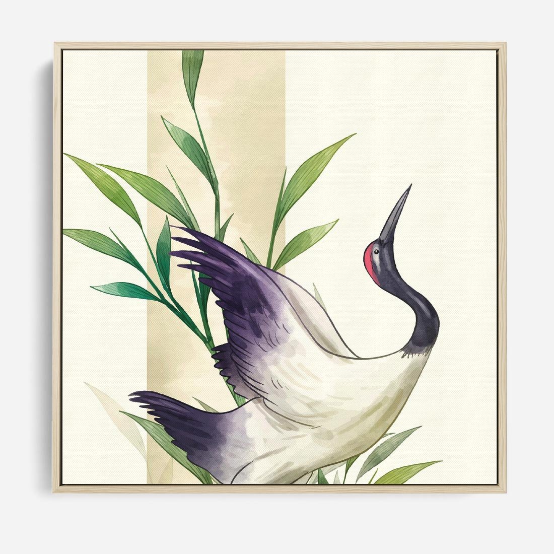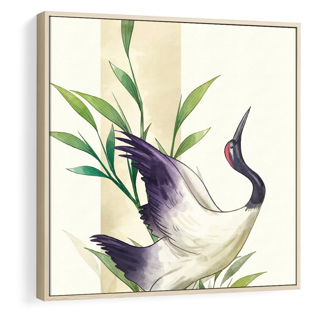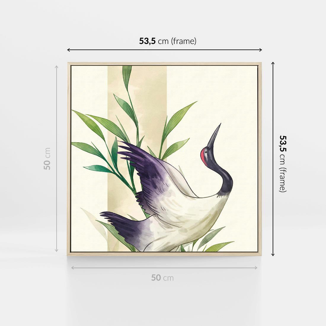 Obraz w ramie 50x50 - Migocące Ptaki - japońska sztuka, ptak - rama drewno
