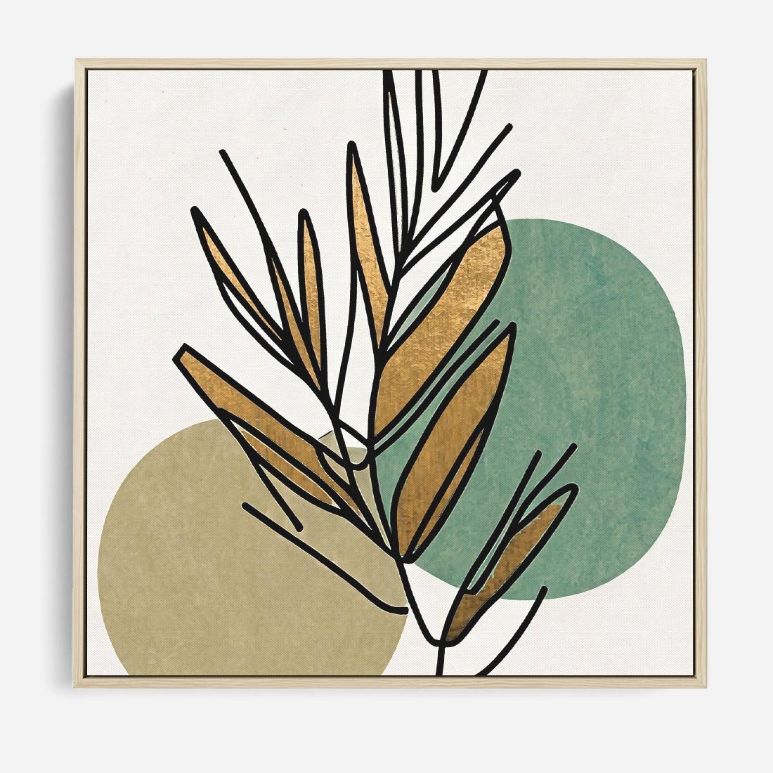 Obraz w ramie 50x50 - Migocące Ścieżki Wizji - abstrakcyjny obraz boho, liście - rama drewno