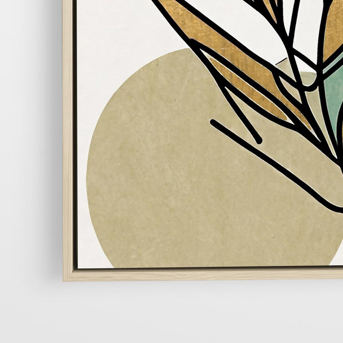 Ten abstrakcyjny obraz w stylu boho to prawdziwa oda naturze. Liście układają się w harmonijne kompozycje, tworząc dynamiczne formy i krzywe. Złote elementy dodają blasku i elegancji, a złote liście subtelnie podkreślają przywiązanie do natury i bogactwa. To artystyczne dzieło wypełni przestrzeń pięknem i energią natury, tworząc wyjątkową atmosferę w każdym wnętrzu.