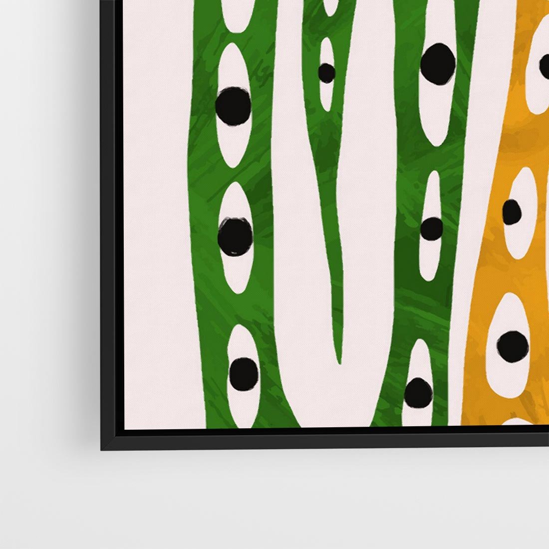 Nasz abstrakcyjny obraz przeniesie Cię w tajemniczy świat dziwnych kształtów przypominających zwinne węże. Soczyste żółte i zielone barwy ożywiają kompozycję, tworząc dynamiczny kontrast. To wyjątkowy akcent artystyczny, który dodaje charakteru i zaskoczenia każdej przestrzeni.