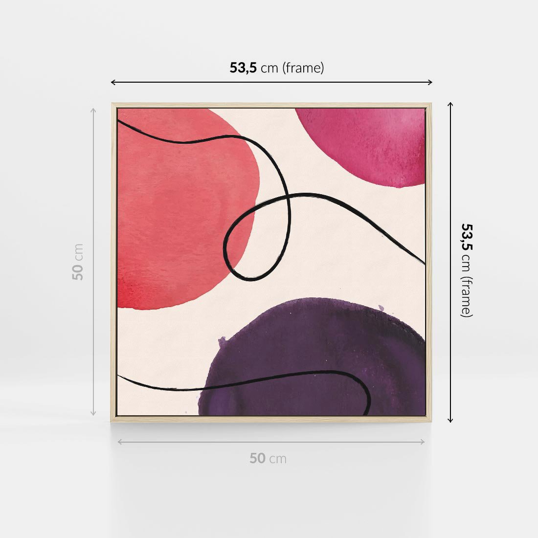 Obraz w ramie 50x50 - Migoczące Echo - abstrakcyjne akwarelowe plamy, nieregularne linie - rama drewno