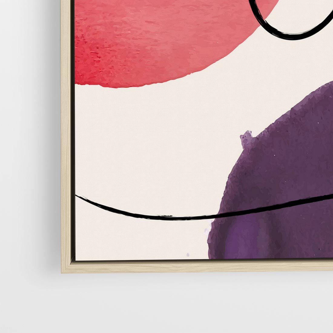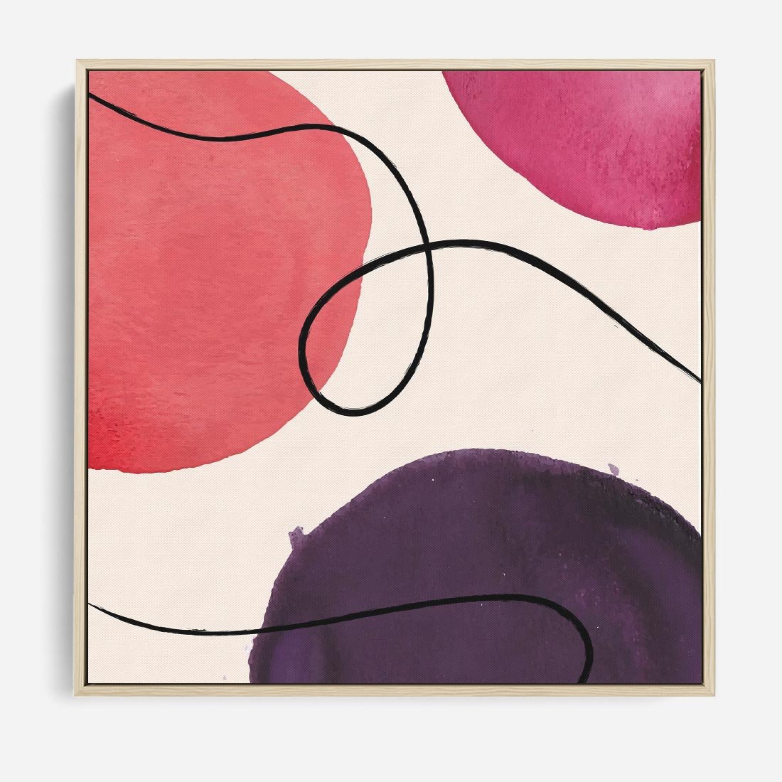 Ten obraz emanuje energią dzięki abstrakcyjnym akwarelowym plamom i nieregularnym liniom, tworząc chaos w kompozycji. Odcienie fioletu i różu dodają mu wyrazistości.