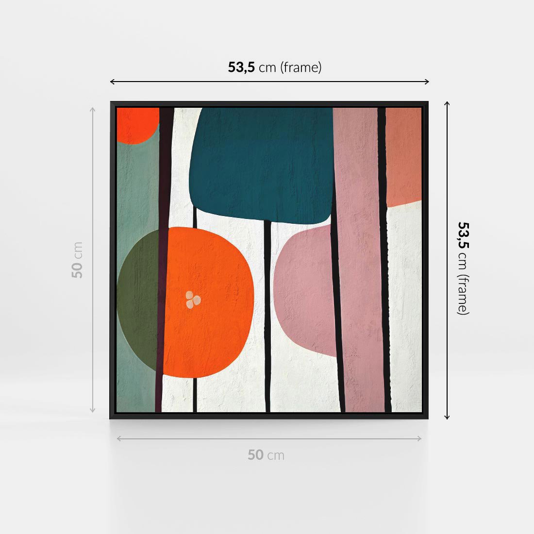 Obraz w ramie 50x50 - Migotliwa Aura Serca - abstrakcyjny obraz olejny, dziwne formy - rama czarna