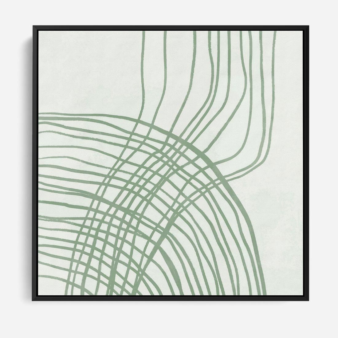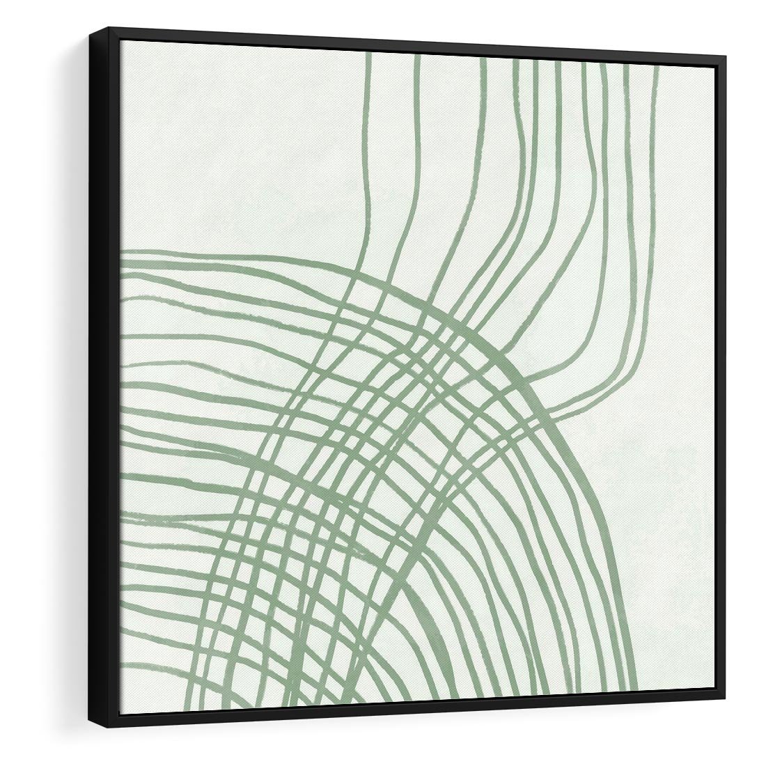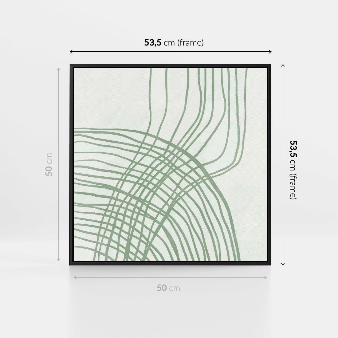 Obraz w ramie 50x50 - Migotliwa Spokojna Zieleń - zielony plakat, abstrakcyjne splątane linie - rama czarna