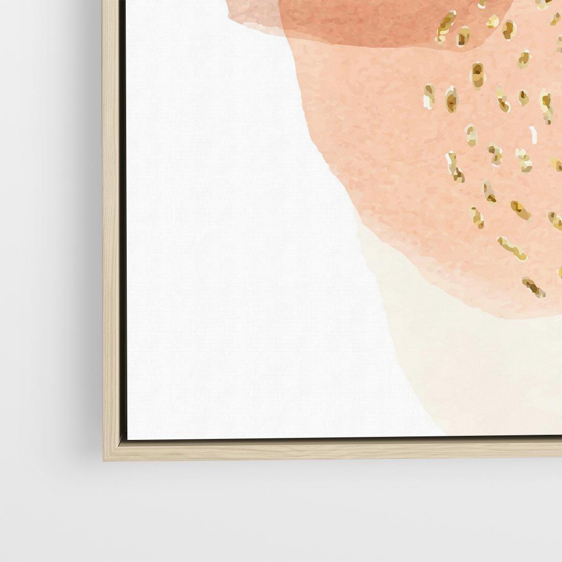 Minimalistyczna kompozycja abstrakcyjnych akwarelowych plam w stonowanych pastelach, ozdobiona subtelnie złotymi elementami. To wyrafinowane dzieło sztuki, które w prostocie wyraża piękno i harmonię.
