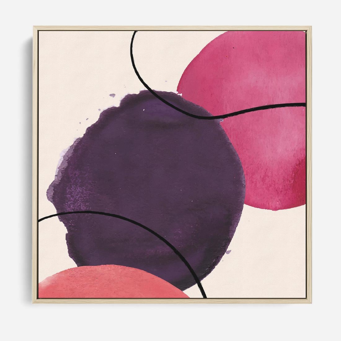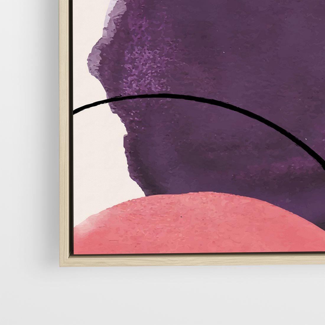 Ten obraz ukazuje abstrakcyjne akwarelowe plamy, nieregularne linie i dynamiczną kompozycję, tworząc piękny chaos w odcieniach fioletu i różu.