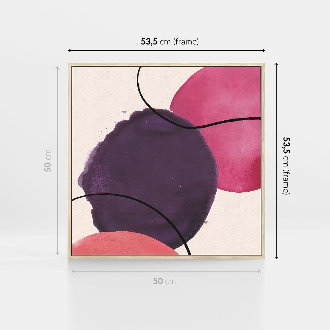 Obraz w ramie 50x50 - Migotliwe Widzenia - abstrakcyjne akwarelowe plamy, nieregularne linie - rama drewno