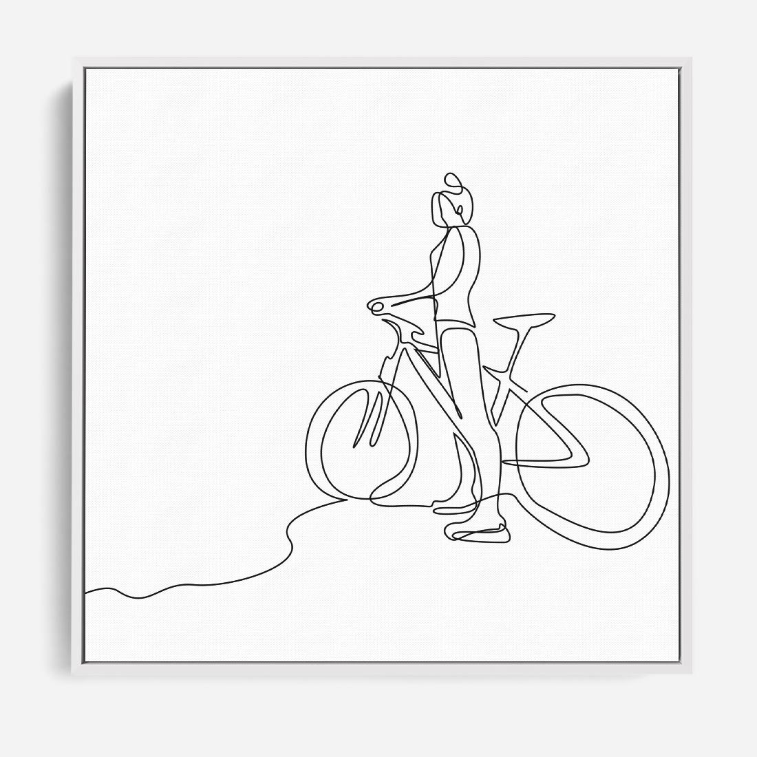 To minimalistyczny szkic przedstawiający dziewczynę na rowerze w technice one line art. Prosta linia oddaje delikatność i wdzięk chwili, zachwycając elegancją kompozycji. To unikalne dzieło sztuki będzie doskonałym dodatkiem do salonu, biura lub przestrzeni, gdzie chcemy wprowadzić subtelny akcent artystycznego minimalizmu.