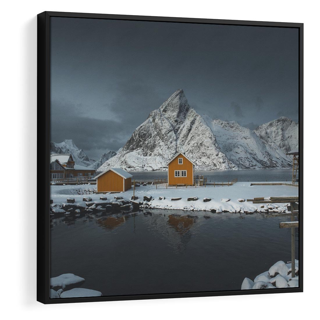 Obraz w ramie 50x50 - Minimalizm i Urok Natury - skandynawskie, domki - rama czarna