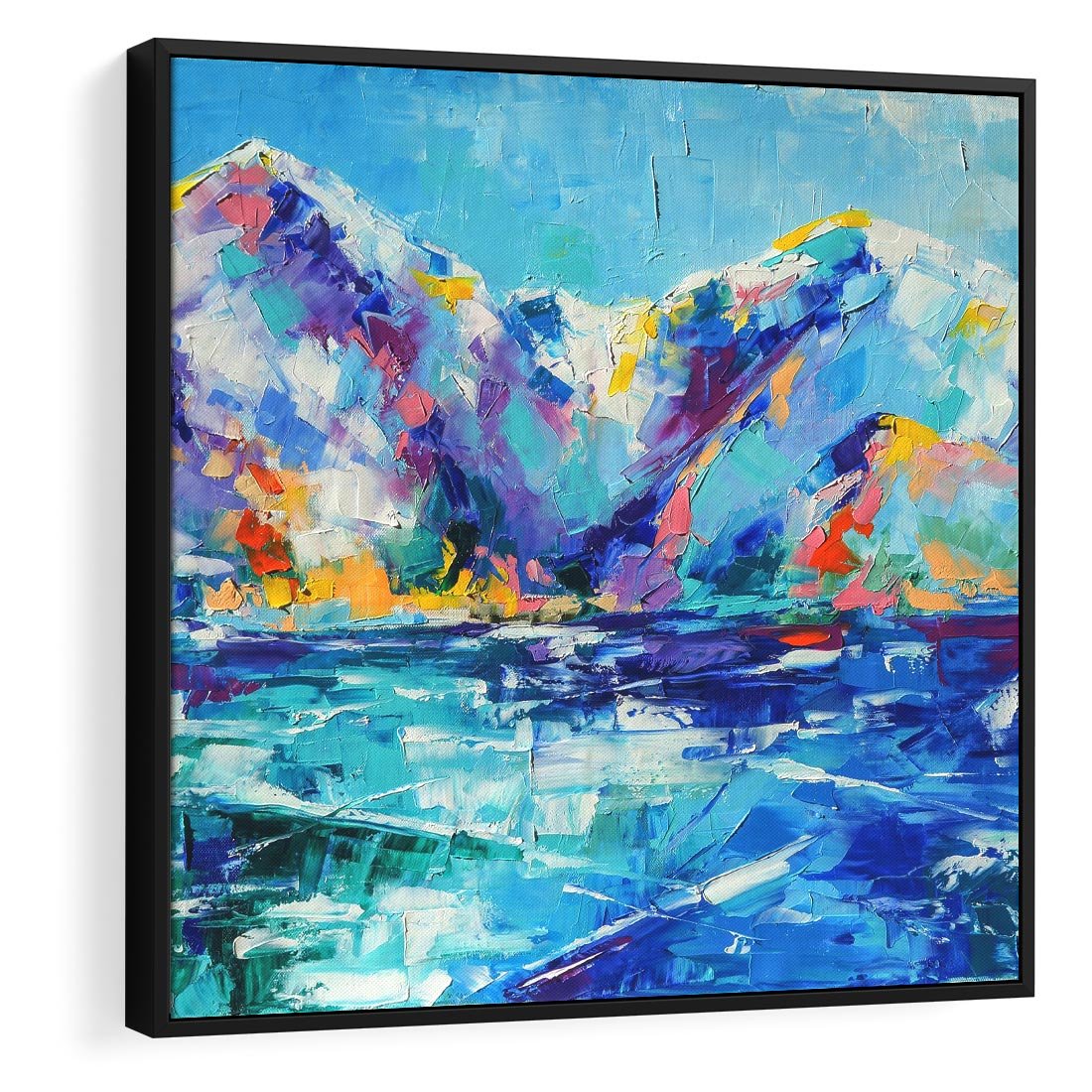 Obraz w ramie 50x50 - Mistyka Górskich Marzeń - abstrakcja, pejzaż gór - rama czarna