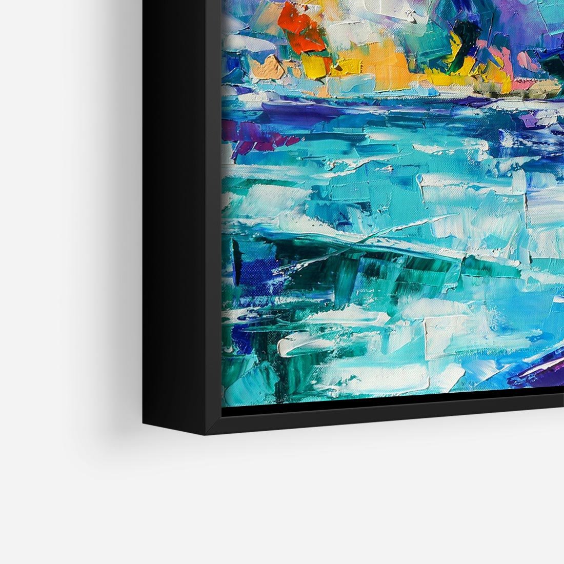 Abstrakcyjny pejzaż górskich szczytów w doskonałym harmonijnym tańcu. Odważne połączenia kolorów – głęboki błękit, ciepła żółć i tajemniczy fiolet – malowane techniką olejną. Ten niezwykły obraz wprowadzi magiczny nastrój do Twojego wnętrza, tworząc most pomiędzy rzeczywistością a abstrakcją.