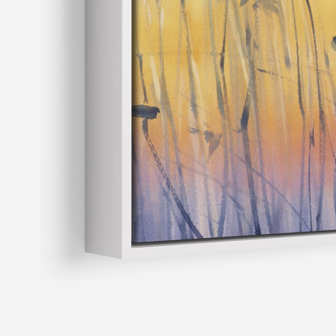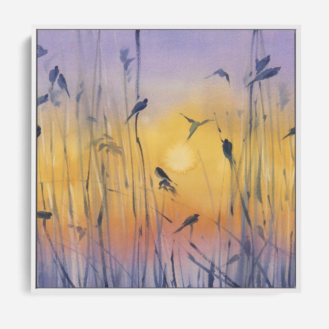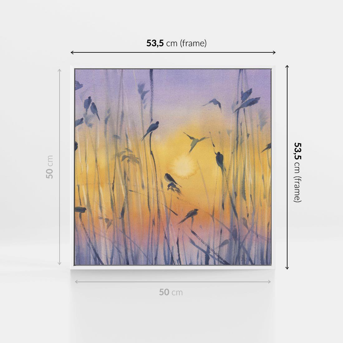 Obraz w ramie 50x50 - Mistyka Poranka nad Szuwaram - wschód słońca w szuwarach, trawy - rama biała