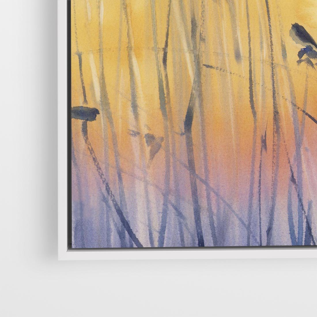 Ta akwarela ukazuje piękny wschód słońca w szuwarach, gdzie trawy ukrywają się w mglistym poranku. Ptaki siedzące na tataraku dodają uroku temu pejzażowi. Mistyka Poranka nad Szuwarami ożywia fioletowo-złote odcienie, tworząc aurę tajemniczości i spokoju, która przenosi nas w chwilę magicznego i naturalnego piękna.