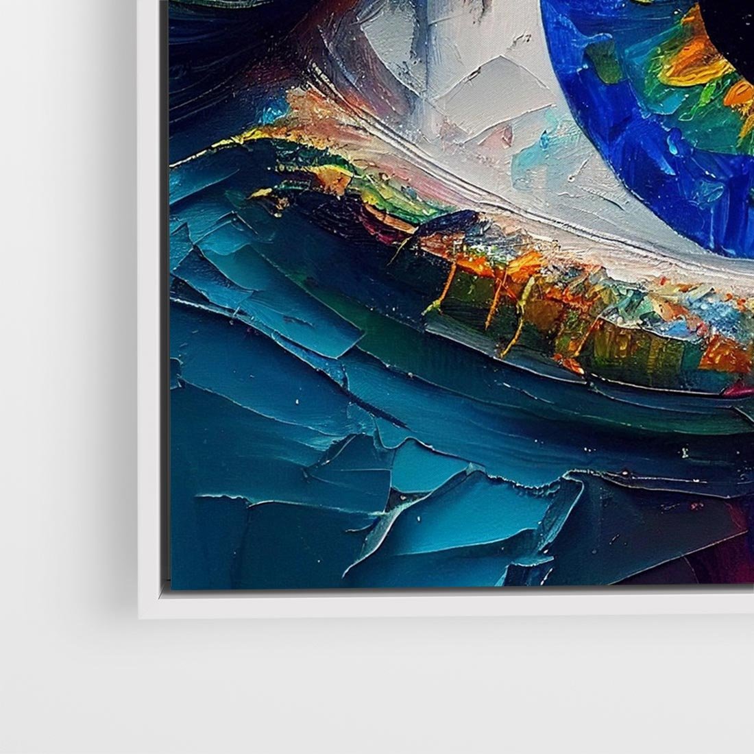 To olejny obraz pełen abstrakcyjnej magii. Wyraziste, tęczowe kolory układają się w kształt tęczówki, ożywiając obraz i wprawiając go w ruch. Mistyka Tęczowego Oka to zmysłowa i tajemnicza kompozycja, która przyciąga wzrok i wzbudza ciekawość. Idealny dla miłośników sztuki abstrakcyjnej i poszukiwaczy unikalnych doznań wizualnych.