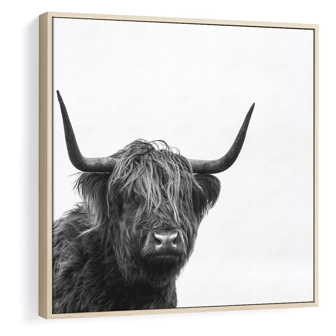 Obraz w ramie 50x50 - Moc i Spokój - amerykańskie bydło, byk - rama drewno