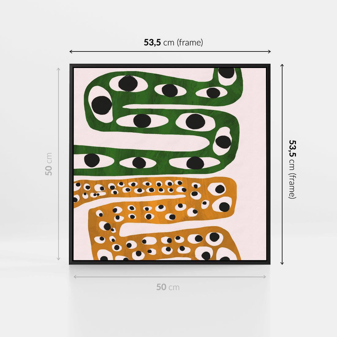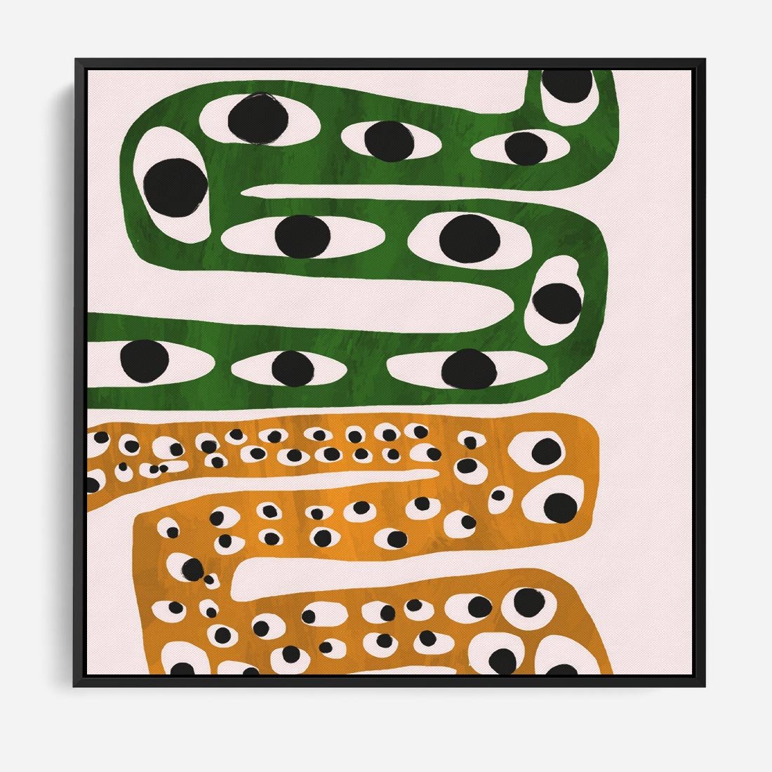 Nasz abstrakcyjny obraz to gra dziwnych kształtów, które przypominają zwinne węże, tańczące w tonacjach żółtego i zielonego. Ta odważna kompozycja wywołuje niezwykłe wrażenie, prowokując do interpretacji i zapraszając do zanurzenia się w nowoczesnej sztuce. To wyjątkowy element dekoracyjny, który wniesie do Twojej przestrzeni energetyczny i zaskakujący akcent.