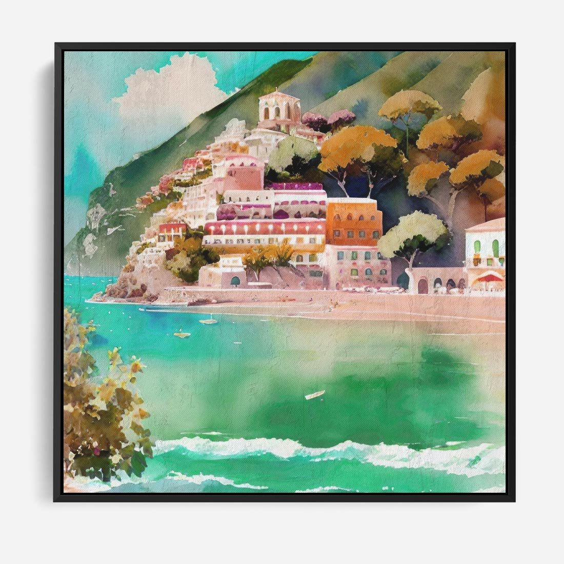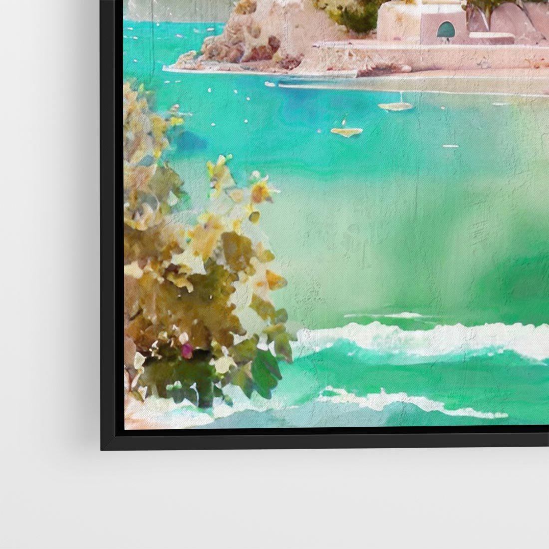 Ta akwarela przedstawia uroczy pejzaż śródziemnomorski. Na obrazie widzimy malownicze domki położone na zboczu wzgórza, które spoglądają na morze i piękną plażę. Technika akwareli nadaje temu obrazowi delikatność i subtelną kolorystykę, typową dla krajobrazów nadmorskich regionów śródziemnomorskich. To dzieło sztuki wspaniale oddaje atmosferę i urok tego miejsca, przynosząc nastrój relaksu i spokoju. Może być idealnym dodatkiem do wnętrza, które pragnie wprowadzić śródziemnomorską estetykę i atmosferę do swojego otoczenia.
