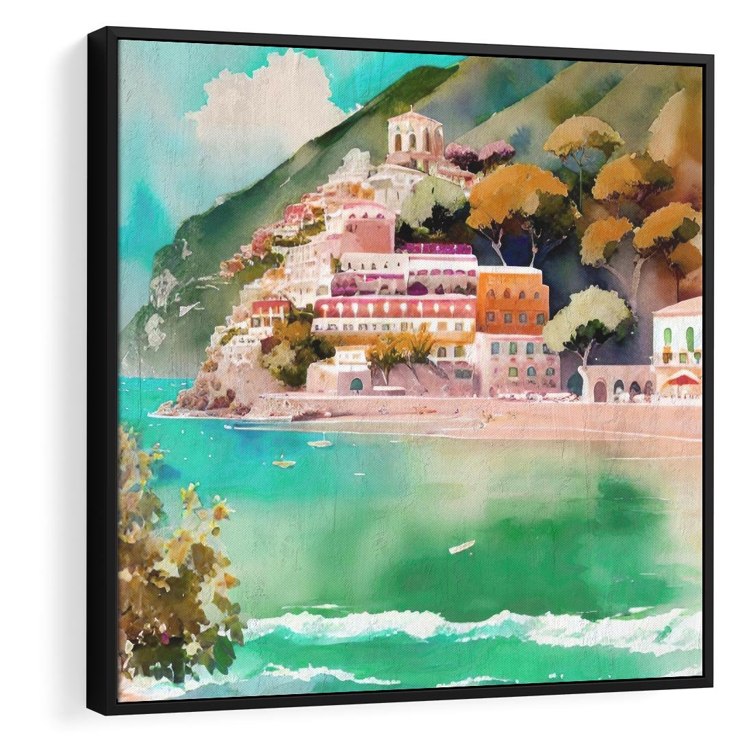 Obraz w ramie 50x50 - Na Zboczu - akwarela, nadmorski pejzaż - rama czarna