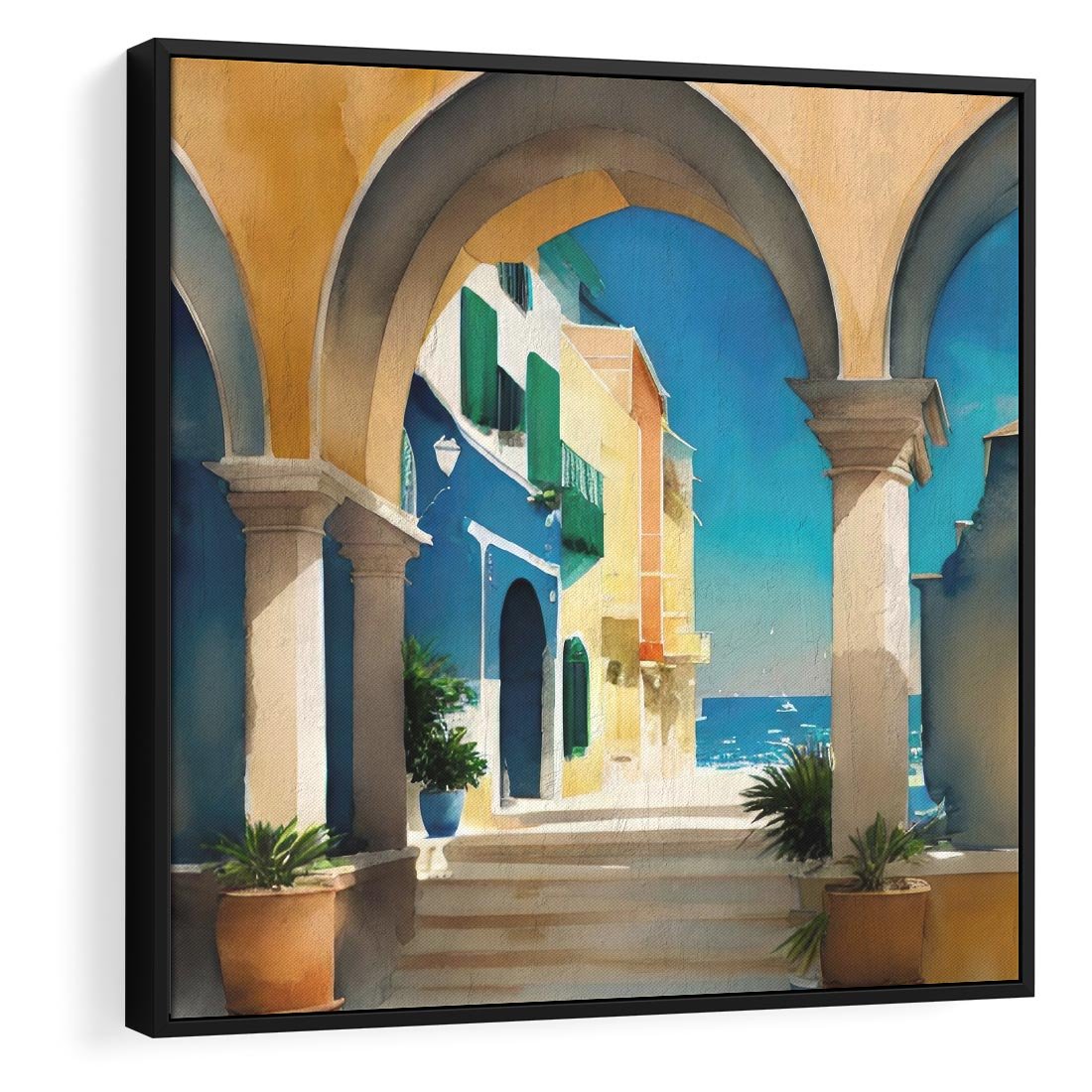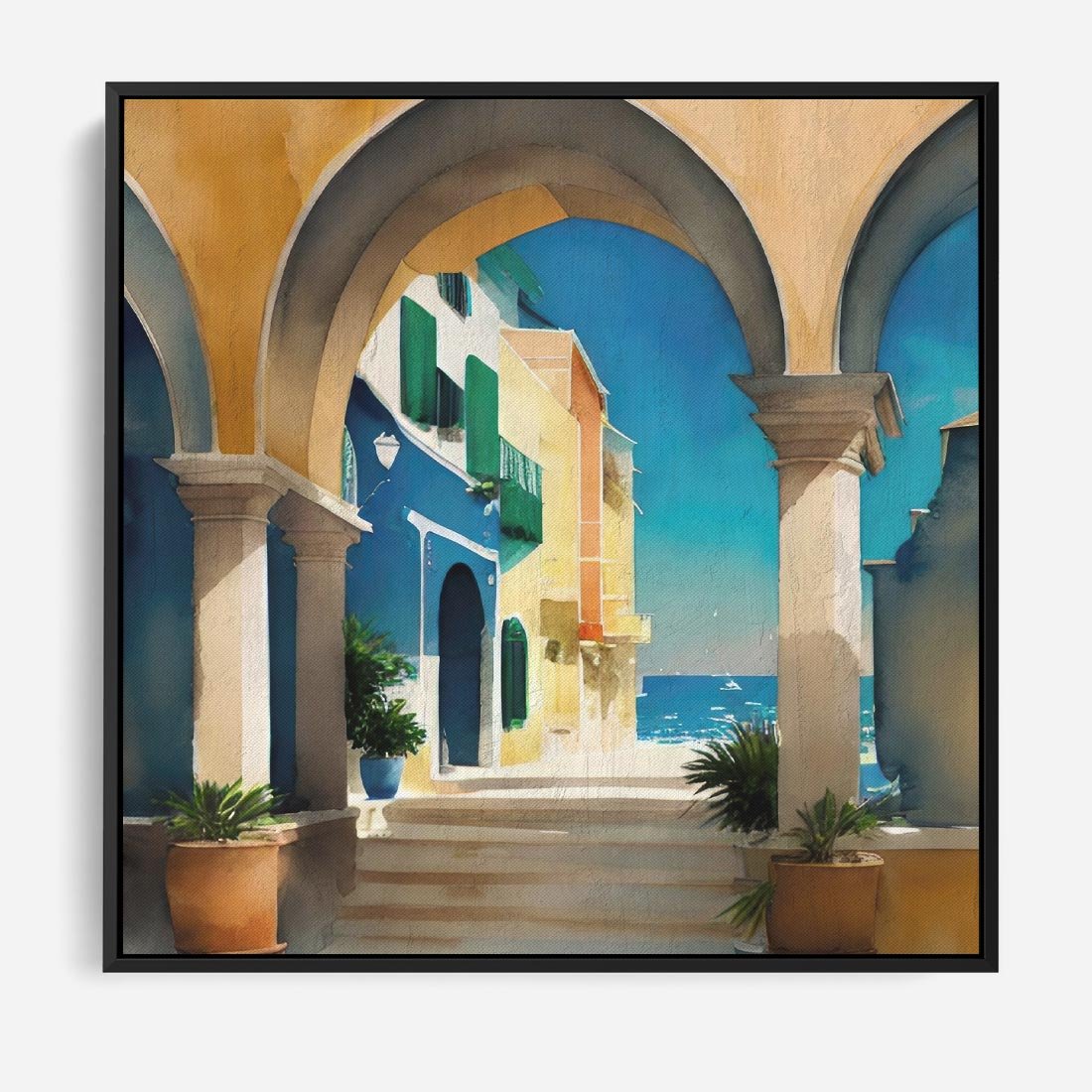 Obraz w ramie 50x50 - Nadmorskie Łuki - akwarela, śródziemnomorski klimat - rama czarna