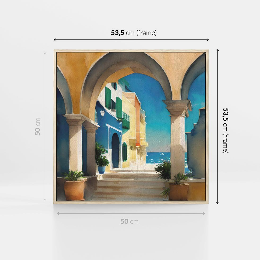 Obraz w ramie 50x50 - Nadmorskie Łuki - akwarela, śródziemnomorski klimat - rama drewno