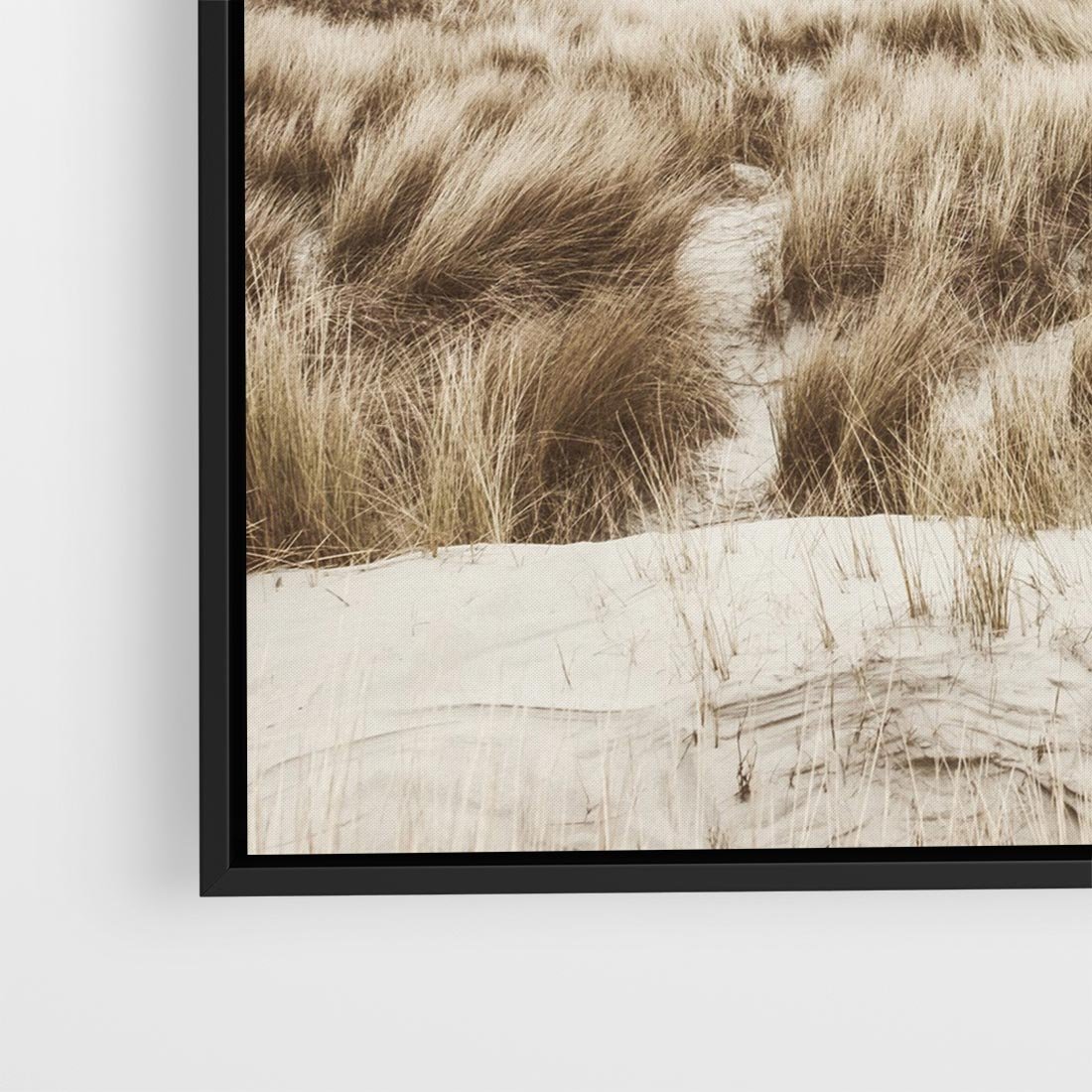 Obraz w ramie 50x50 - Nadmorskie Wydmy - fotografia, kolory sepii - rama czarna
