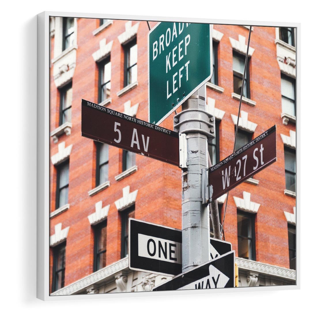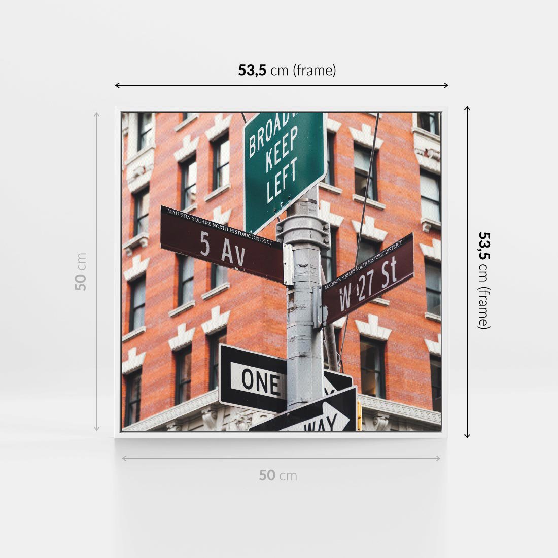 Obraz w ramie 50x50 - Namiastka wielkiego miasta - Nowy Jork, drogowskaz - rama biała