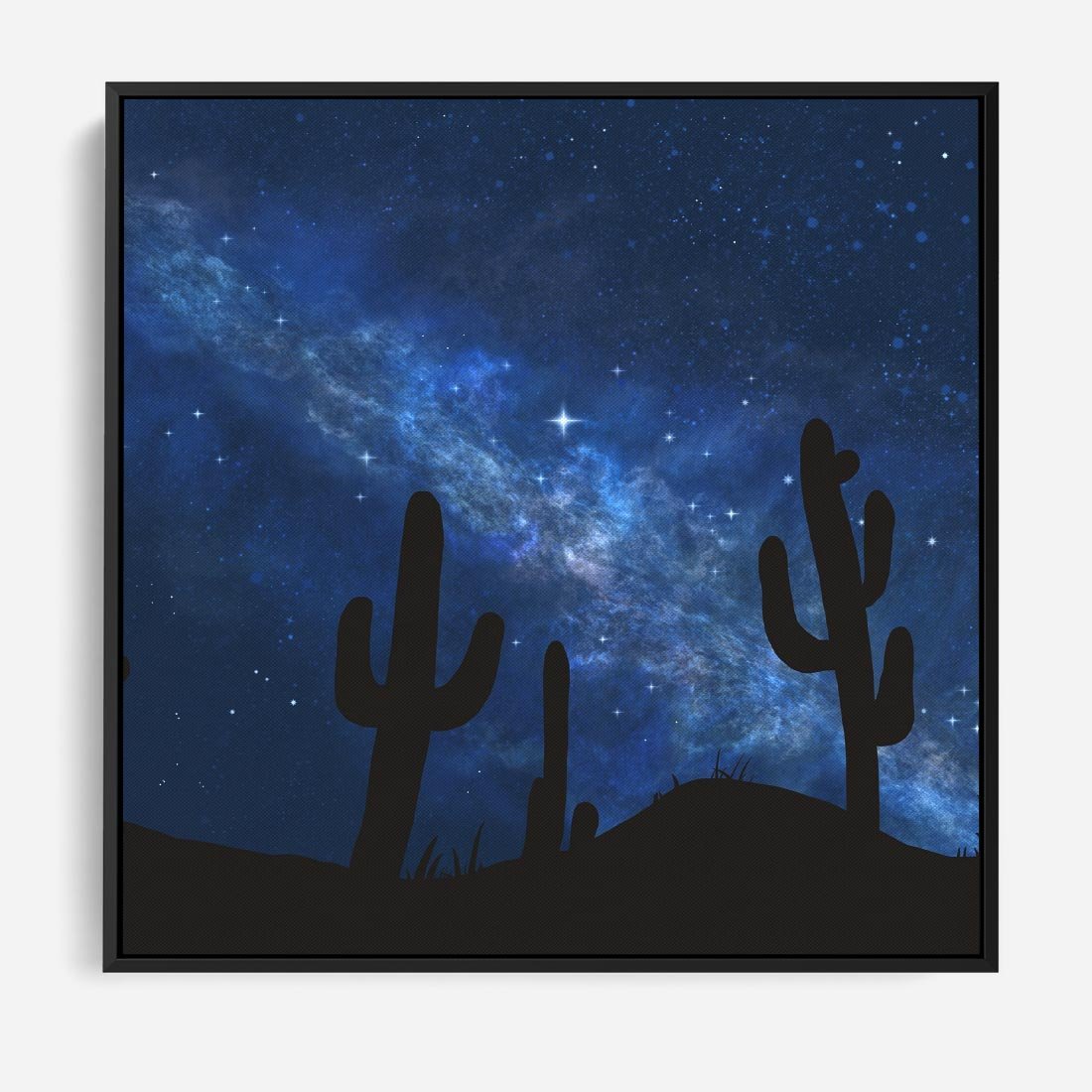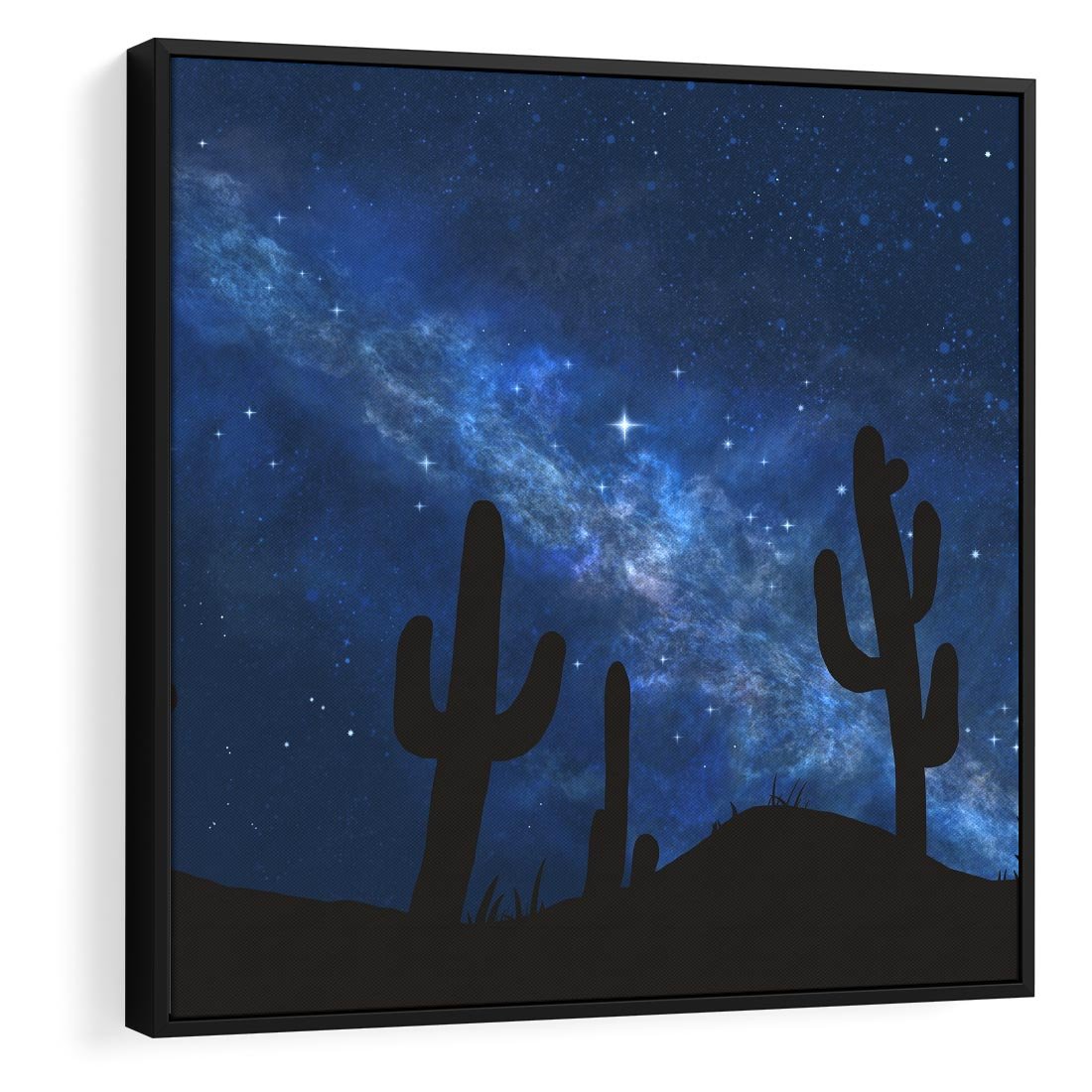 Obraz w ramie 50x50 - Nocne Tajemnice Pustyni - gwieździsta noc, granatowe niebo - rama czarna