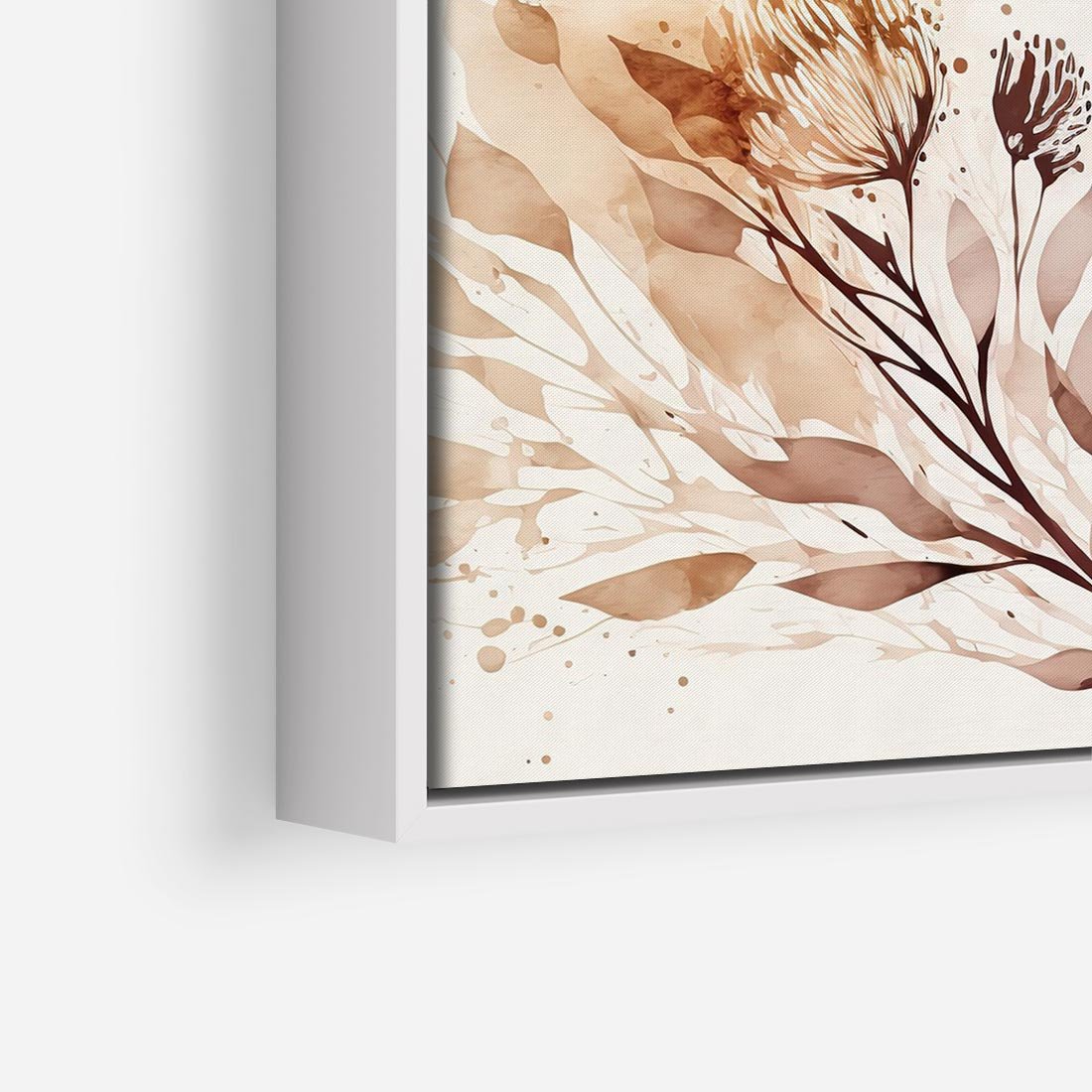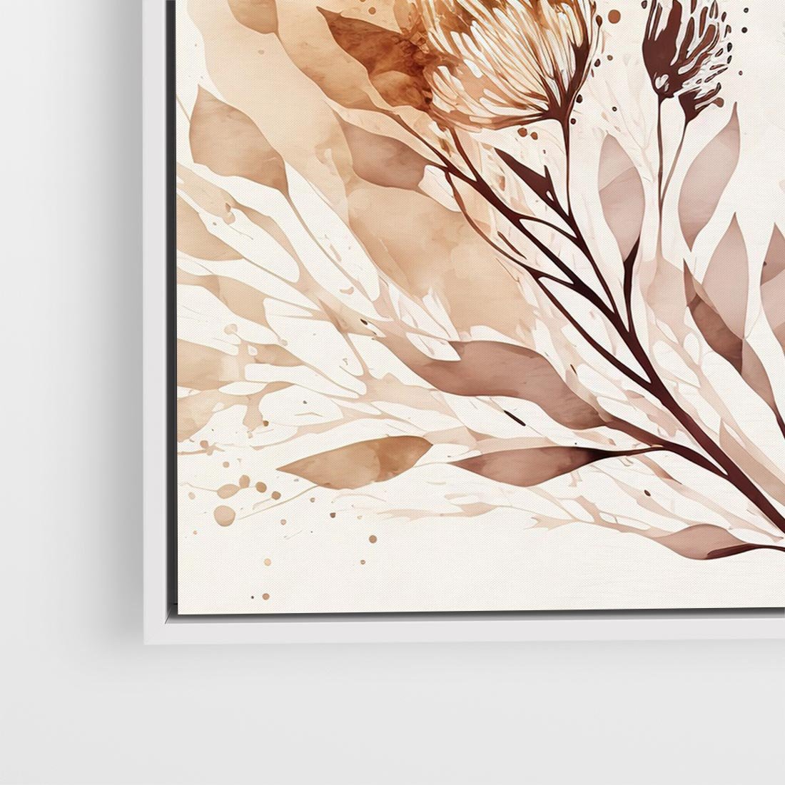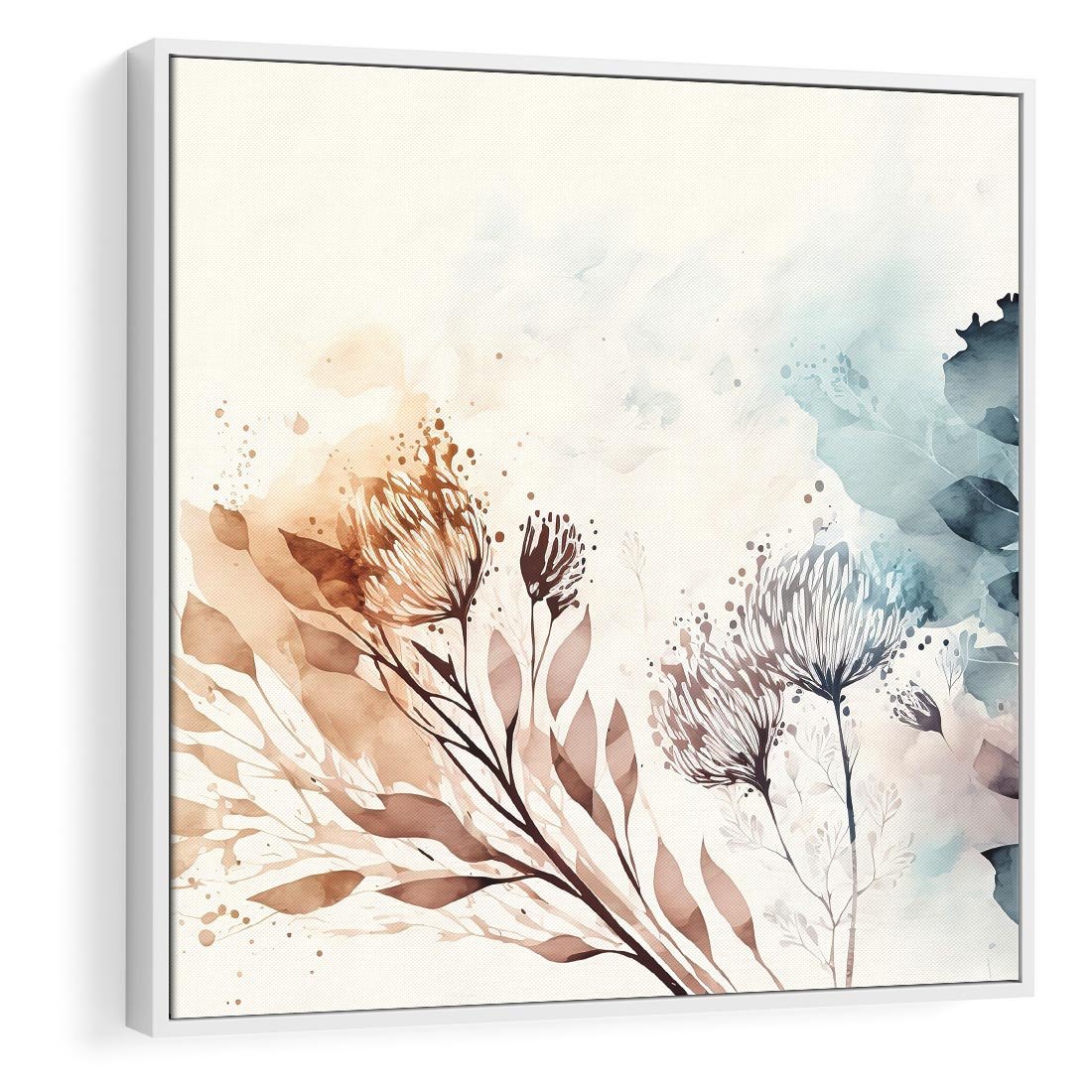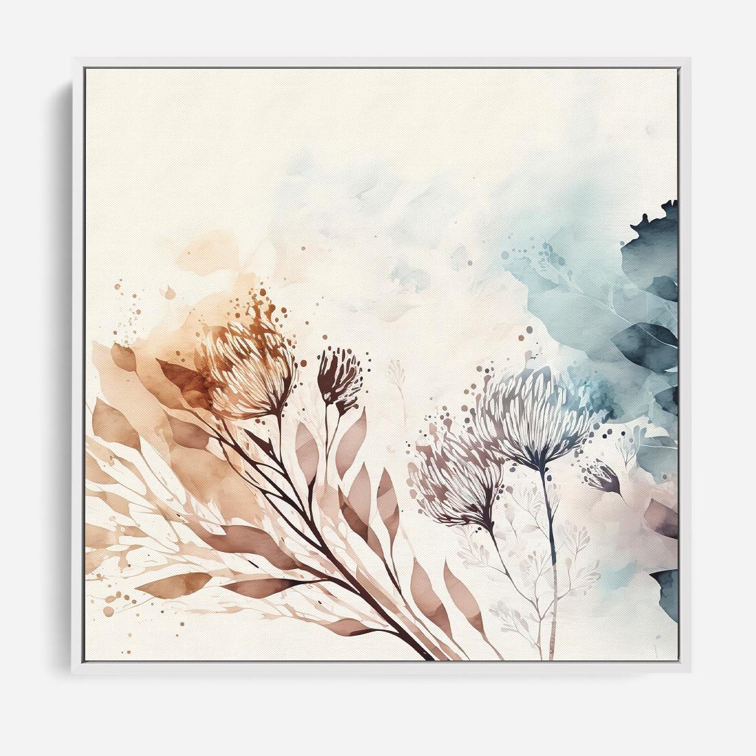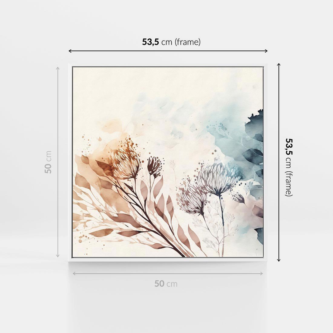 Obraz w ramie 50x50 - Nostalgiczne tańce pędzla - akwarelowe kwiaty, gałęzie - rama biała